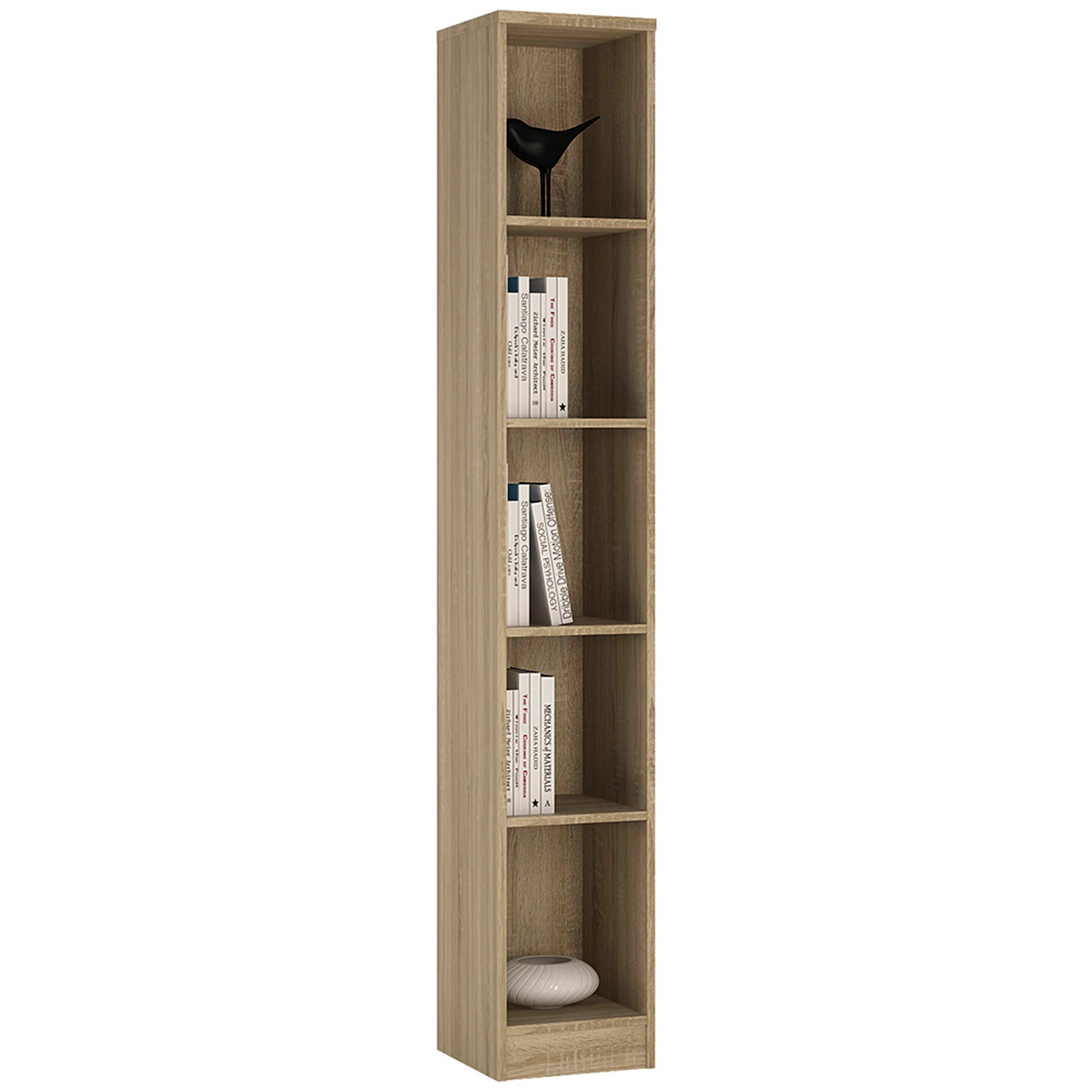 Hollola Sonama Oak Wood Tall Narrow Bookcase 5 Shelves