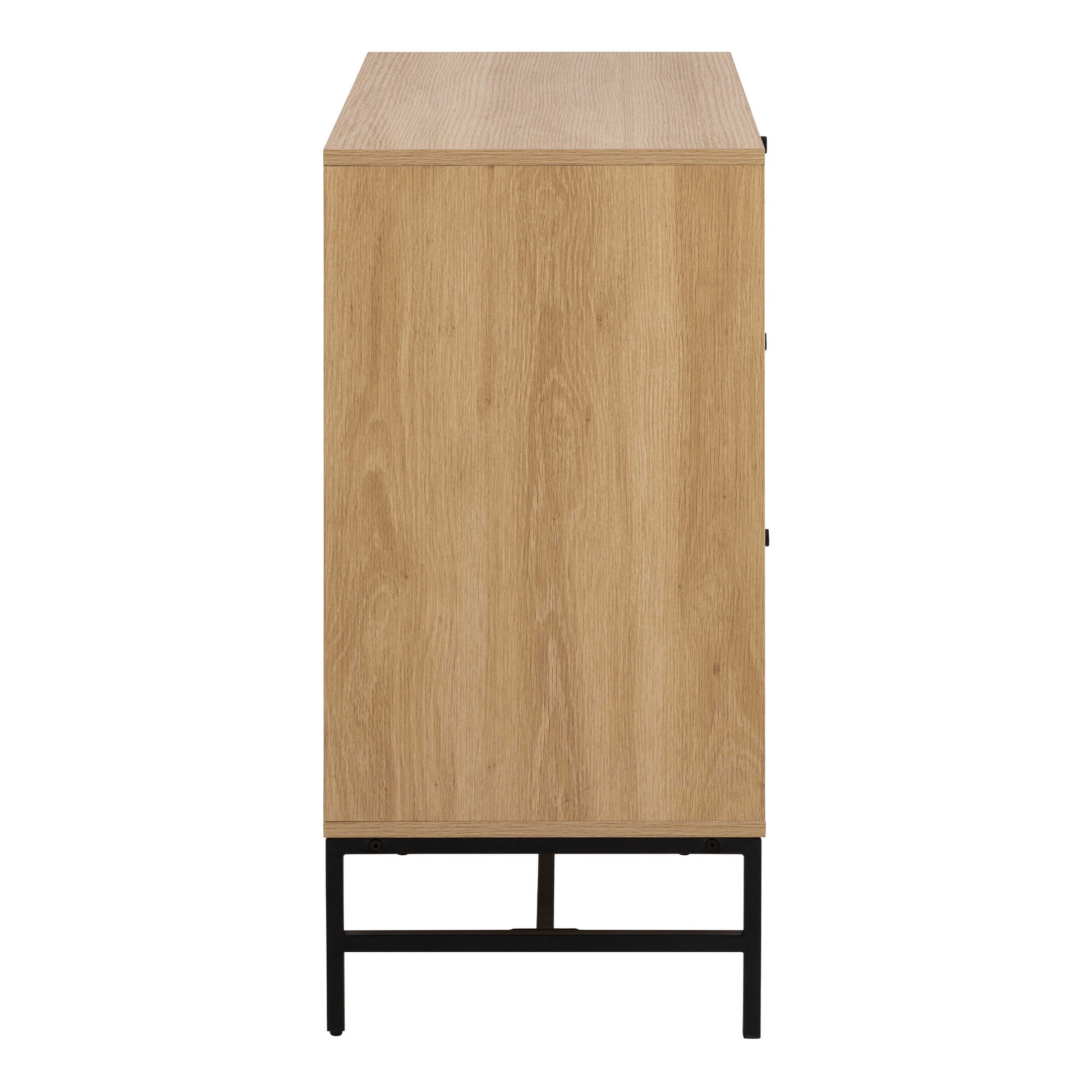 Bjork Natural Oak Wood and Black Panelled Wide Chest of 3 Drawers