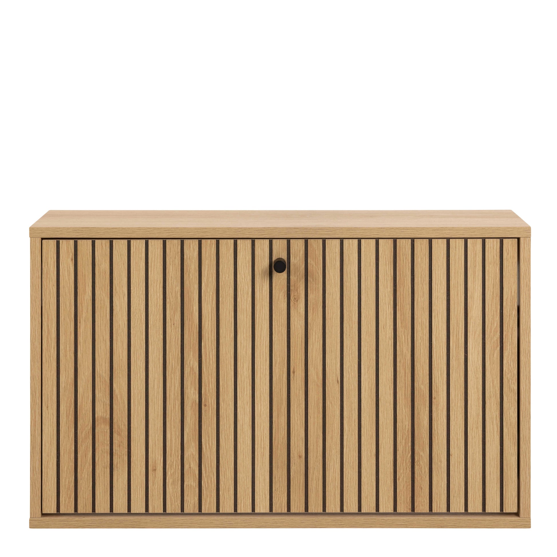 Bjork Natural Oak Wood and Black Panelled Shoe Cabinet 1 Door