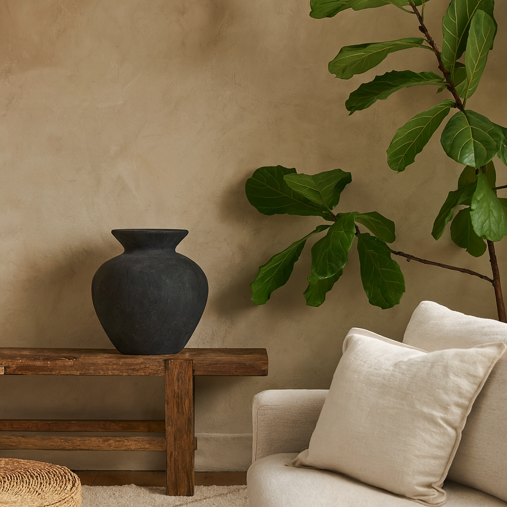 A refined grey vessel with a clean, sculptural form that feels effortless in modern interiors. Its matte surface brings a soft, stone-like presence, giving it the quiet strength of a piece shaped by hand.