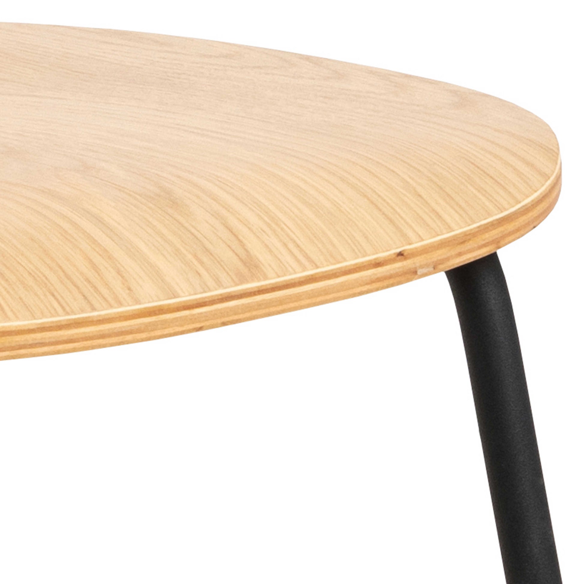 Bring a refined urban note to the dining space with a pair of chairs that balance warmth and contrast beautifully. Rounded oak veneer shapes the seat and back, creating a comfortable, inviting feel with a timeless edge. Black metal legs ground the design, adding a modern graphic touch that feels confident without overpowering the room.