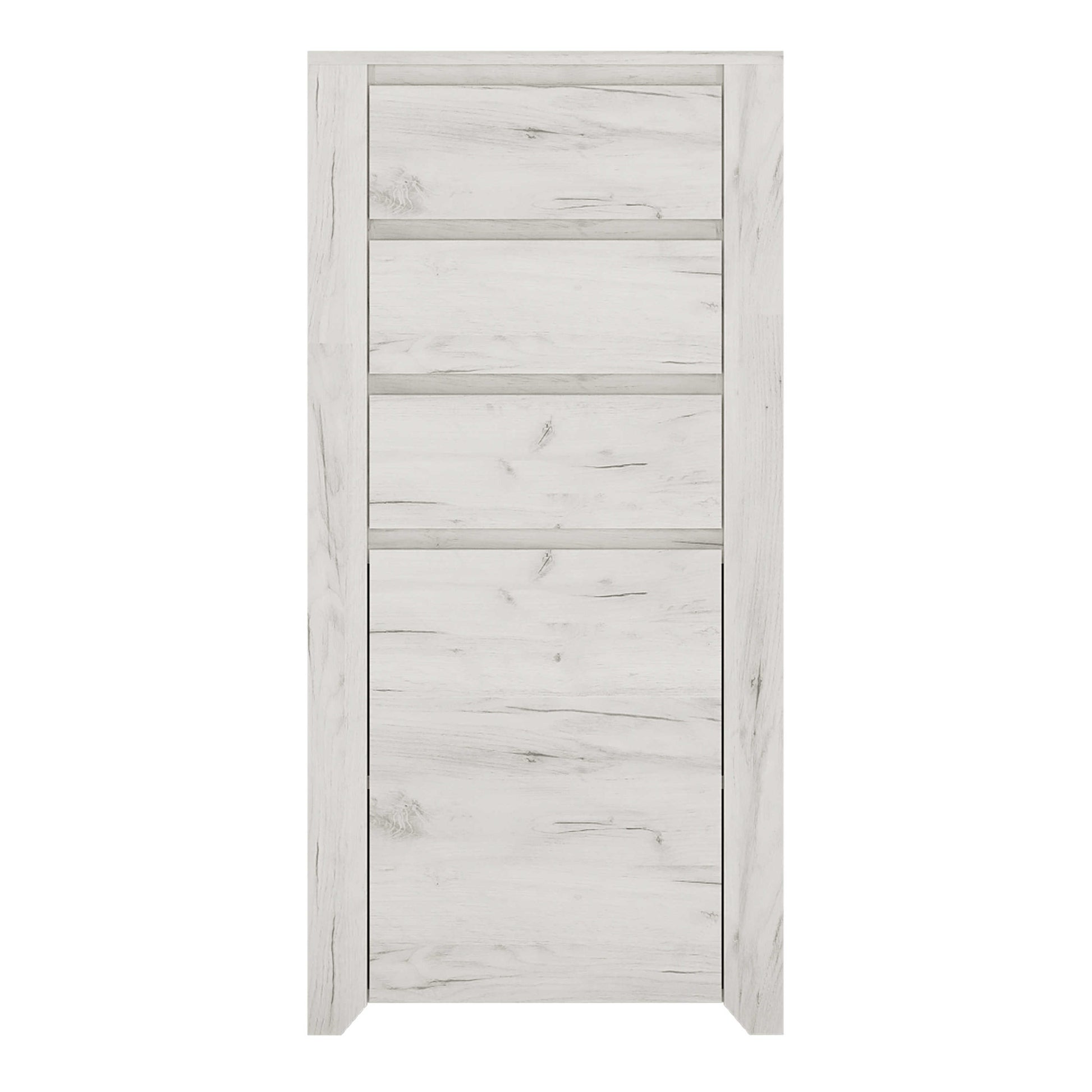 This chest of drawers brings a calm, modern feel with its pale wood look and softly weathered grain. The finish adds lightness to the room while keeping a natural warmth that feels relaxed and welcoming. Its clean, upright shape helps smaller or larger bedrooms feel organised without looking heavy, blending easily into contemporary interiors with a laid back, curated vibe.