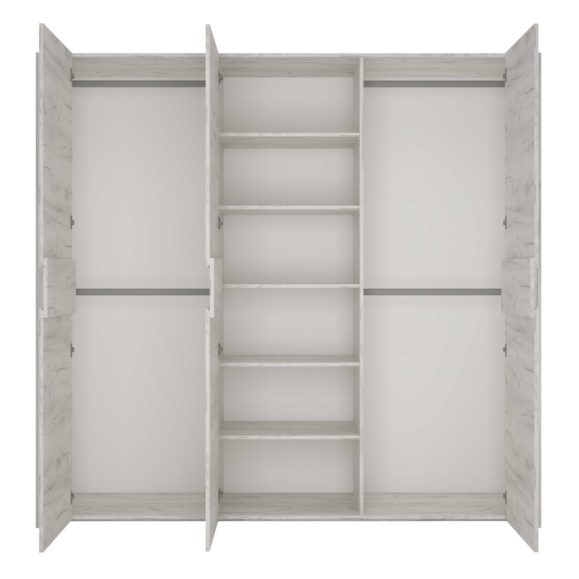 Inside, storage is generous and flexible, with hanging space for everyday outfits and shelves for folded items, shoes or spare bedding. Built from durable laminated board with a hard wearing resin surface, it is made to handle daily use with confidence. Practical, reliable and quietly stylish, it is a solid choice for effortless bedroom organisation.