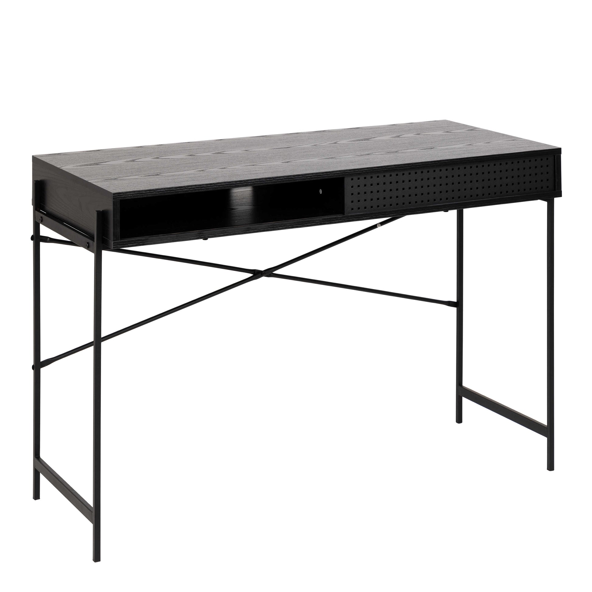 This black desk brings a calm modern presence with clean lines and a black ash look that feels confident without being heavy. The design keeps things light and intentional, making it an easy fit for workspaces that favour clarity and balance. Its simple form adds character while staying understated, helping the room feel organised and focused.