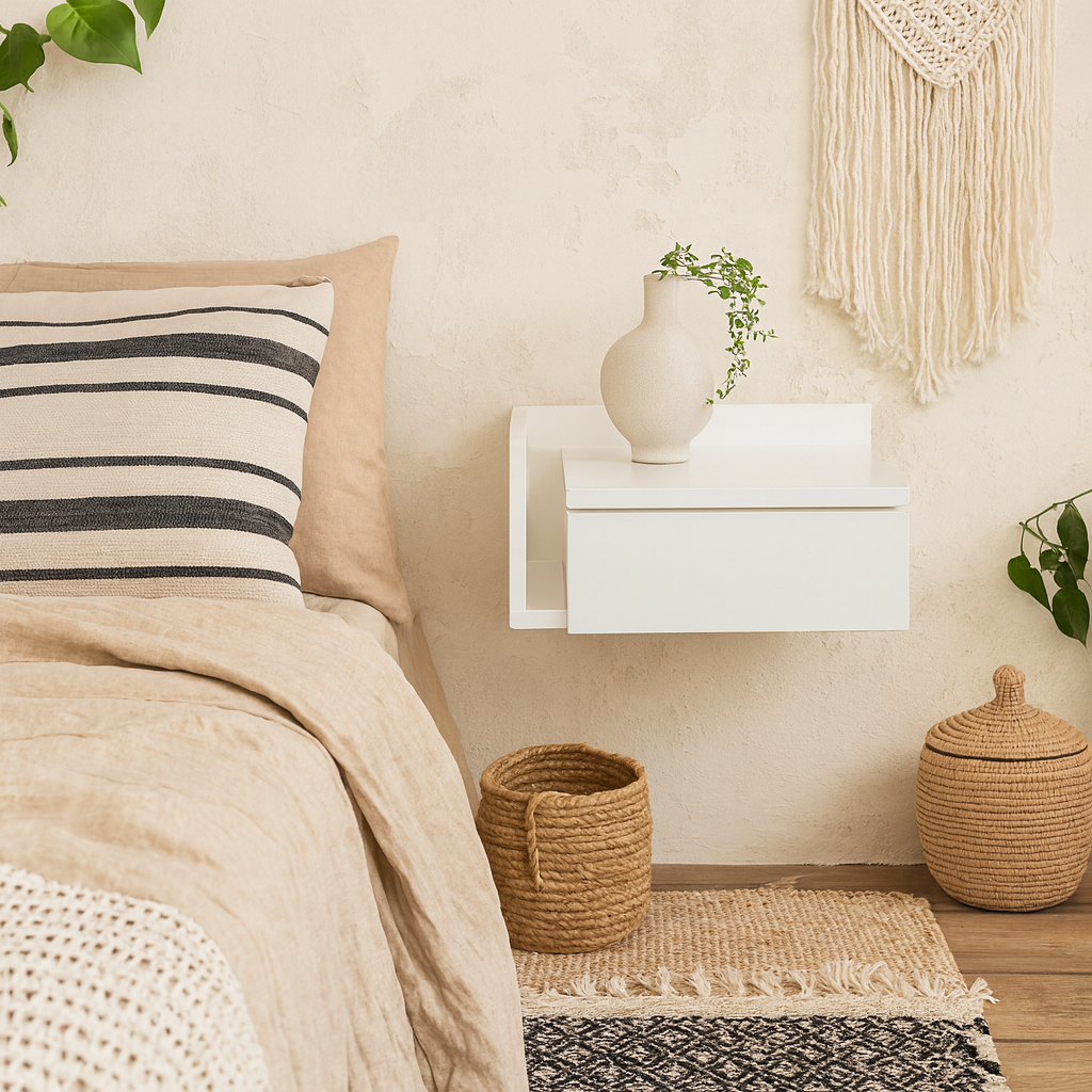 Sydney 1 Drawer Wall Mounted White Square Bedside Table