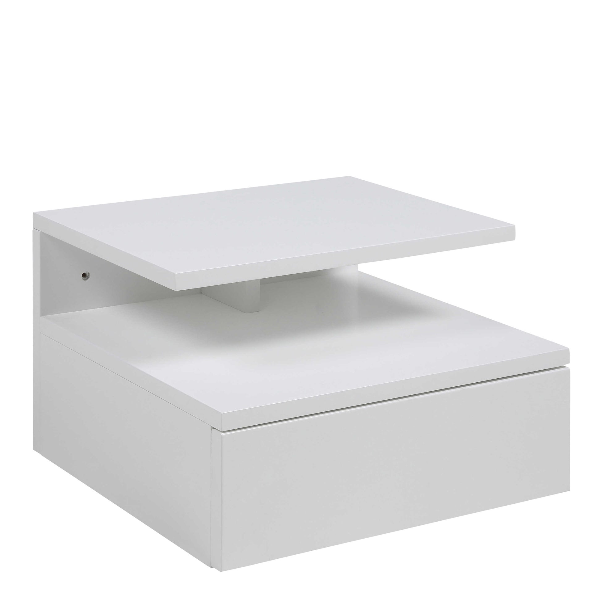 Lincoln White Wooden Floating Bedside Table 1 Drawer Open Shelf