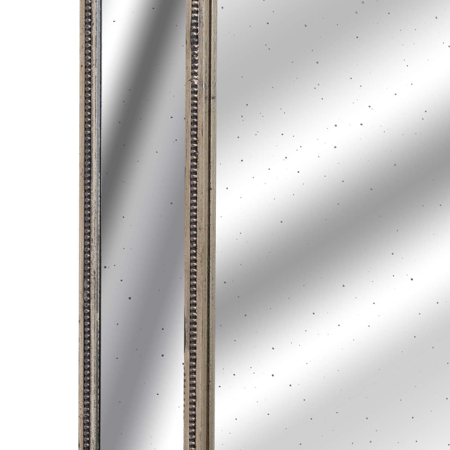 This full-length mirror captures the romance of vintage style with its antiqued detailing and timeless frame. Crafted to lean gracefully against a wall or stand independently, it invites light and depth into any space while carrying the charm of a well-loved heirloom.