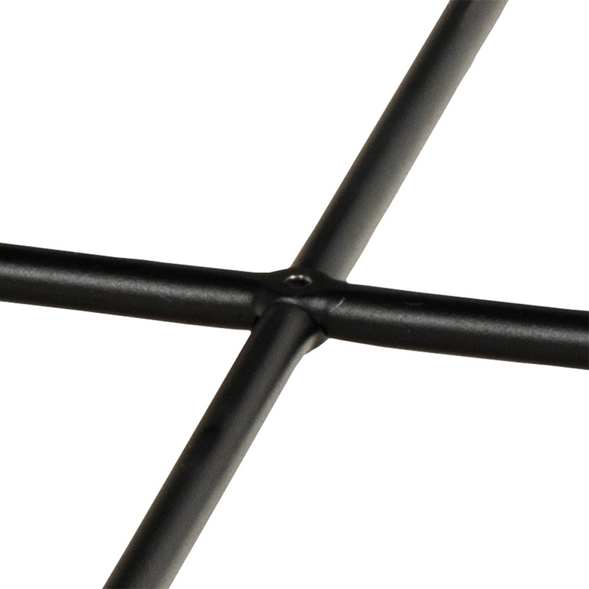 A matt black steel base adds contrast and balance, keeping the look confident and contemporary. The crossed frame gives the table a strong visual rhythm while staying light and versatile. Compact and easy to style, it works beautifully beside seating or as a refined accent in calm curated spaces.