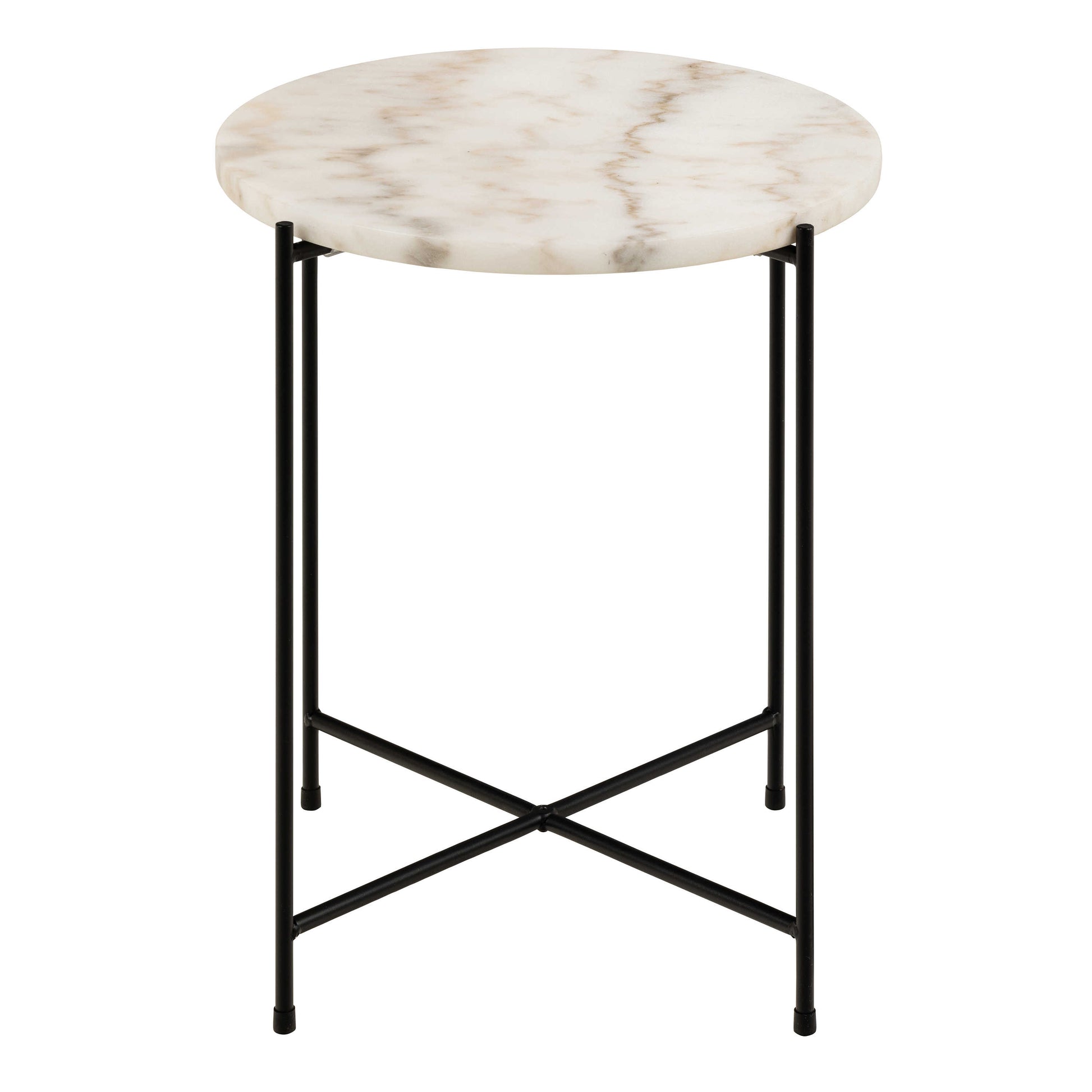 This side table adds an easy sense of elegance with its polished white marble top and calm modern balance. The natural stone surface brings soft movement and character, making each piece feel individual without overwhelming the room. Its round form keeps the look light and approachable, working beautifully in spaces that favour quiet detail and thoughtful design.