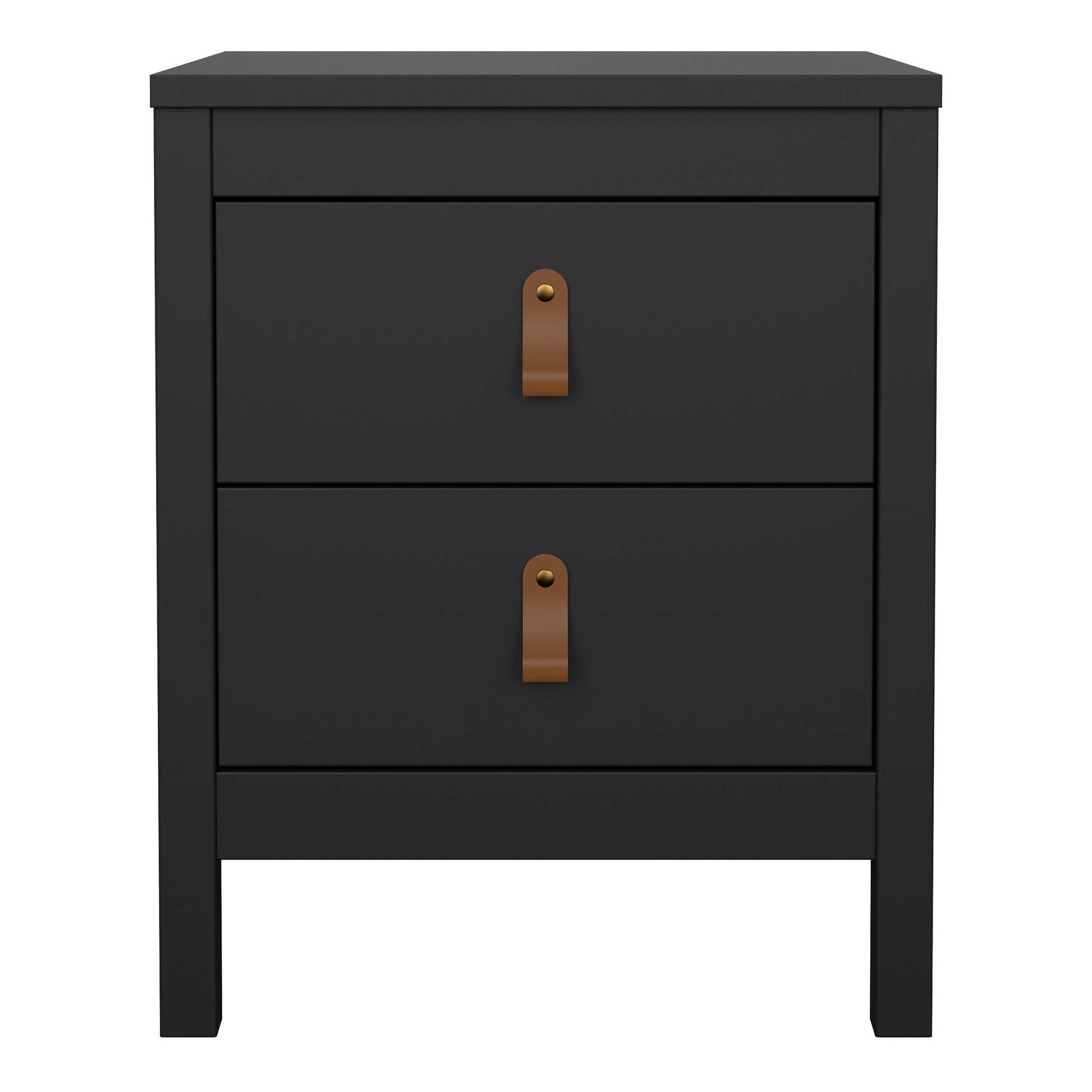 Wildberry Matt Black Bedside Table 2 Drawers Leather Handles