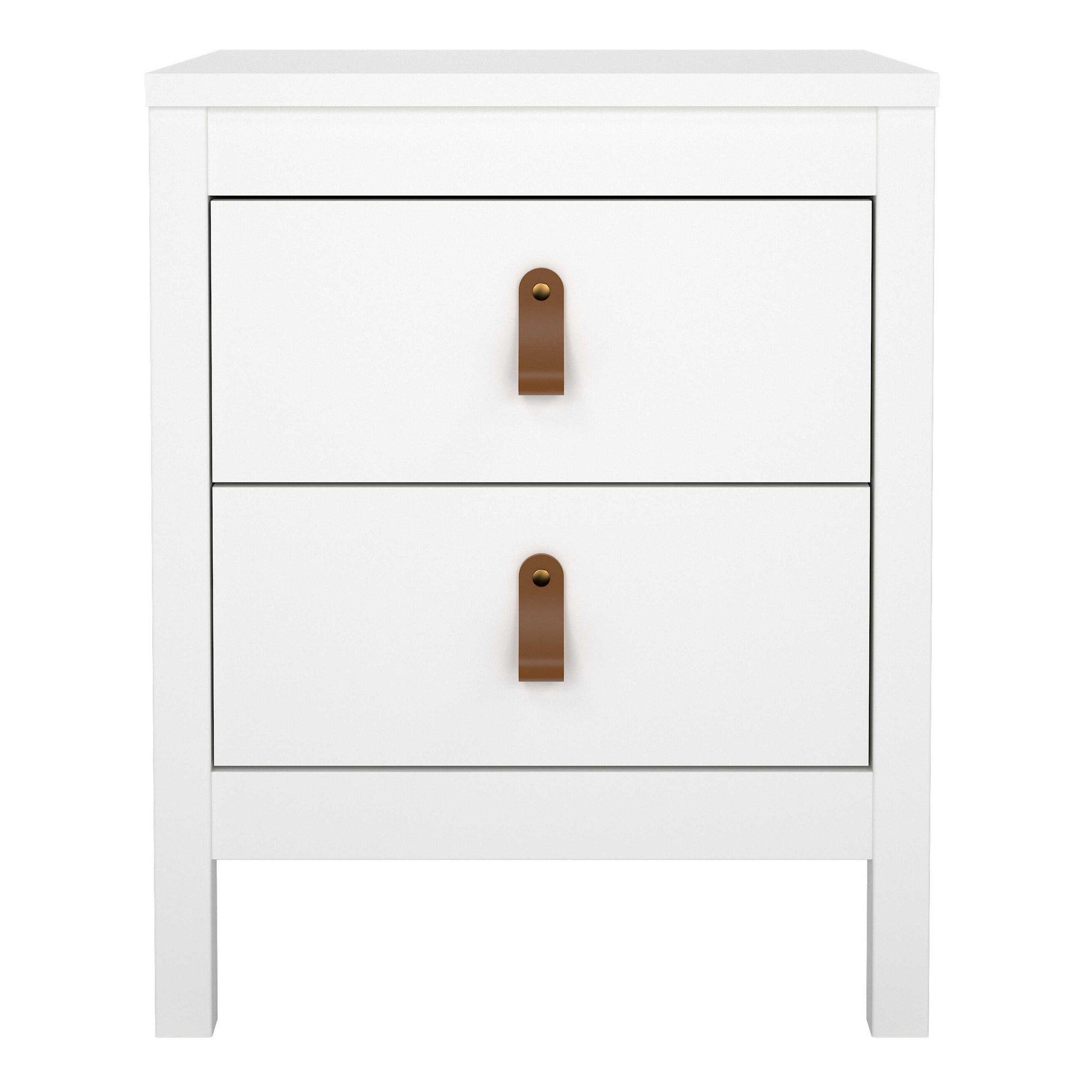 Wildberry Matt White Wooden Bedside Table 2 Drawers Leather Handles