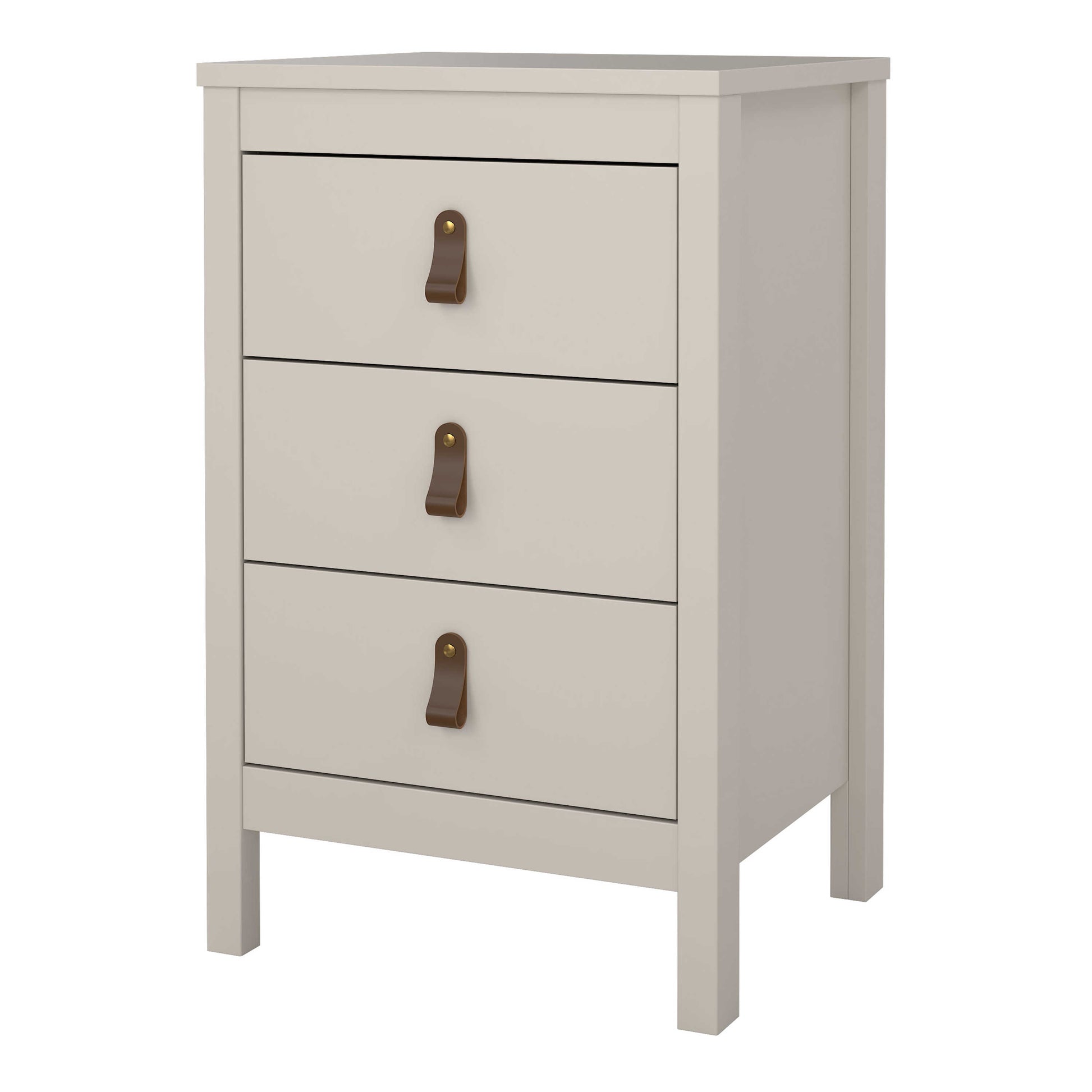 Three generous drawers keep nighttime essentials neatly tucked away, helping surfaces stay clear and uncluttered. The option to switch between handle styles adds a subtle personal touch, letting the piece shift easily between moods. Raised legs keep the room feeling light and make cleaning underneath refreshingly simple.