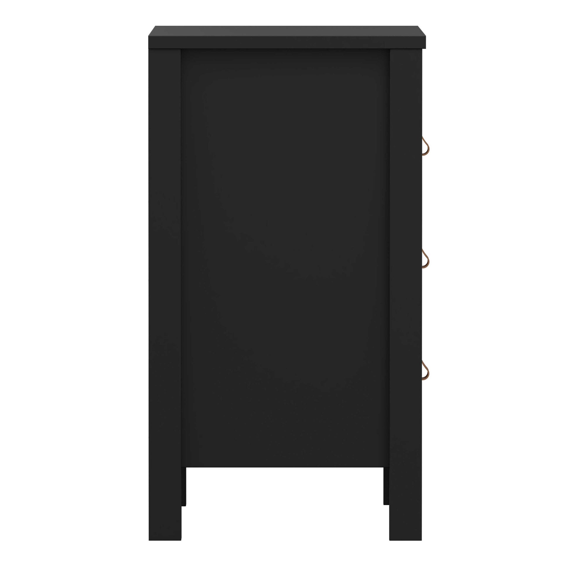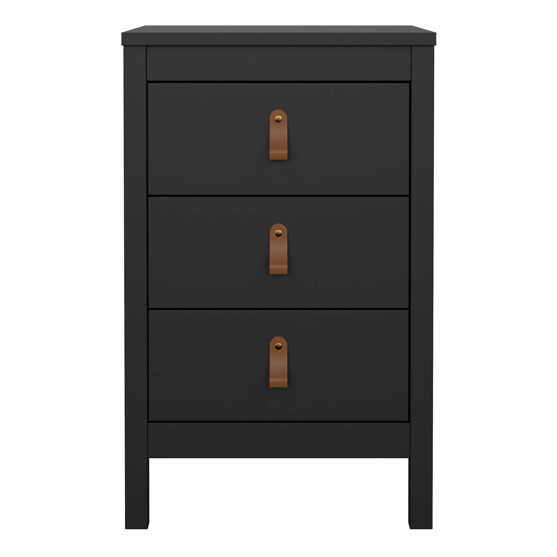 Bring a confident modern mood to the bedroom with this bedside table finished in deep matt black. The contrast of dark surfaces and soft leather strap handles creates a look that feels bold yet considered, adding depth without overwhelming the space. It sits neatly beside the bed, giving the room a calm moody edge that works beautifully in contemporary interiors.