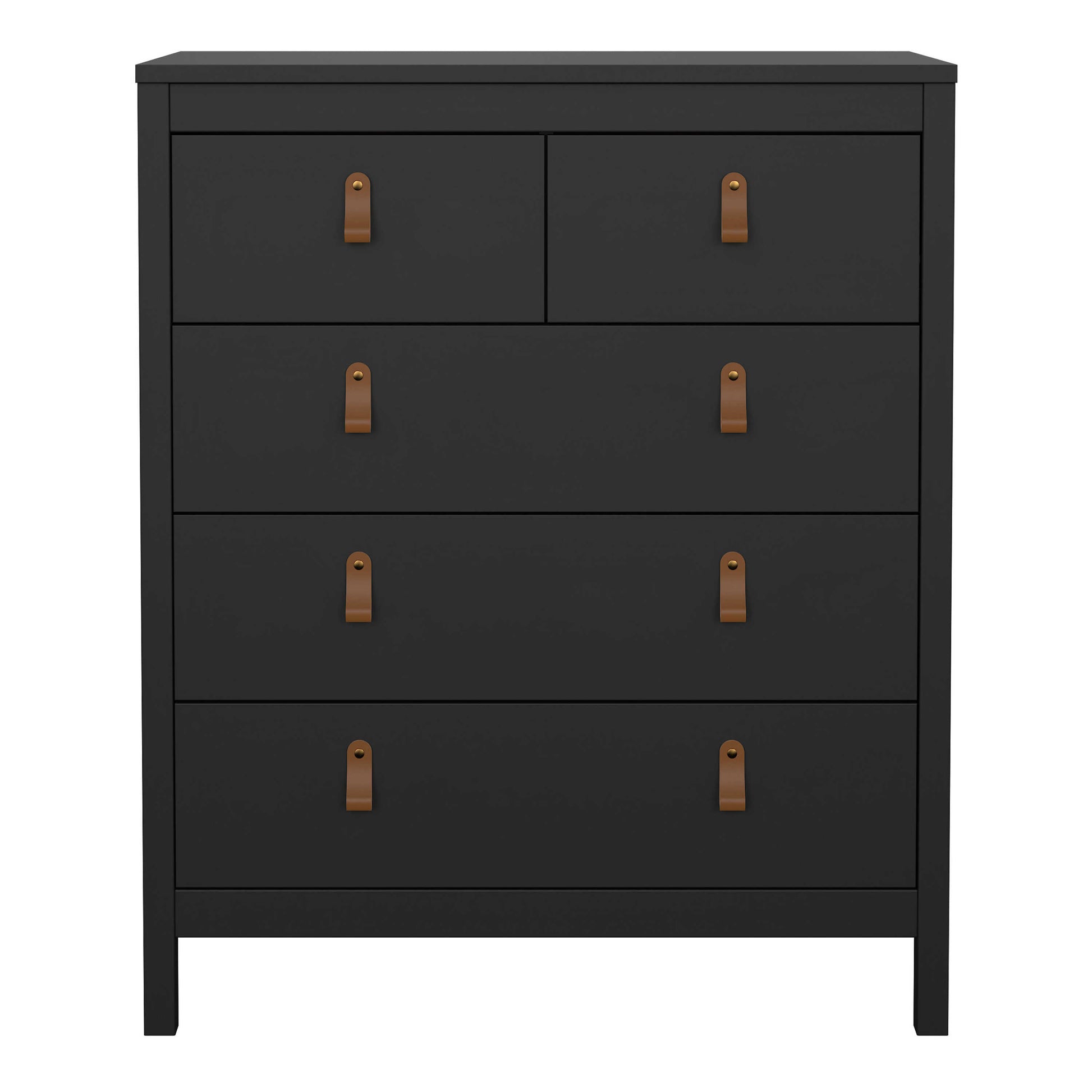 Wildberry Matt Black Chest 5 Drawers Leather Handles