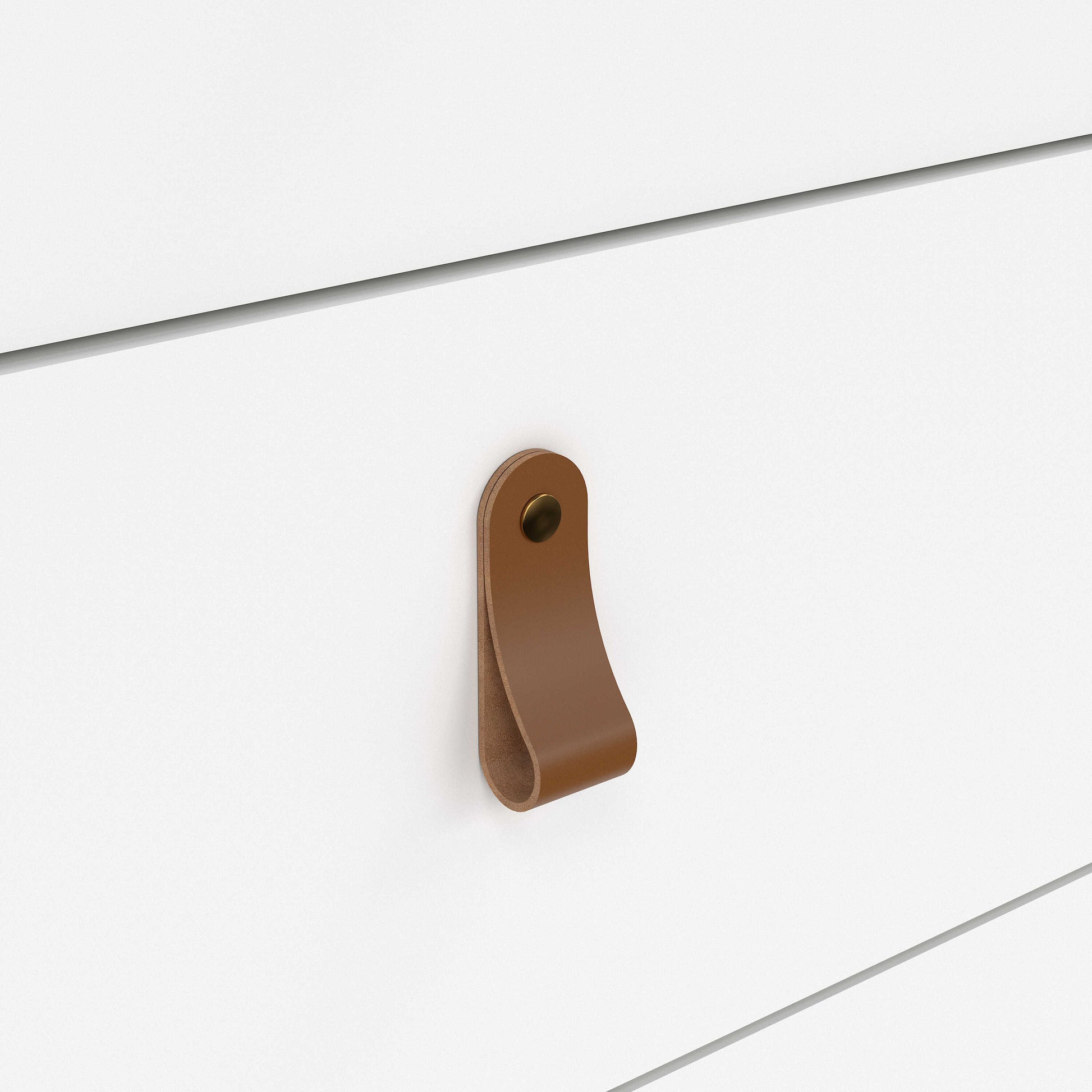 Clean proportions and a crisp finish give this chest of drawers a confident modern presence that feels calm rather than cold. Warm brown leather tab handles soften the look, adding a crafted touch that brings character and depth without overpowering the room. The overall design feels balanced and intentional, making it easy to place in contemporary bedrooms that favour light, uncluttered styling.