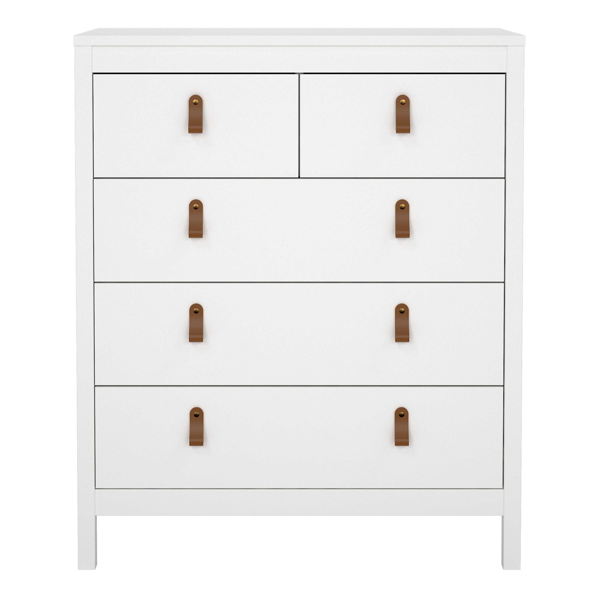 Wildberry Matt White Wooden Chest 5 Drawers Leather Hndles