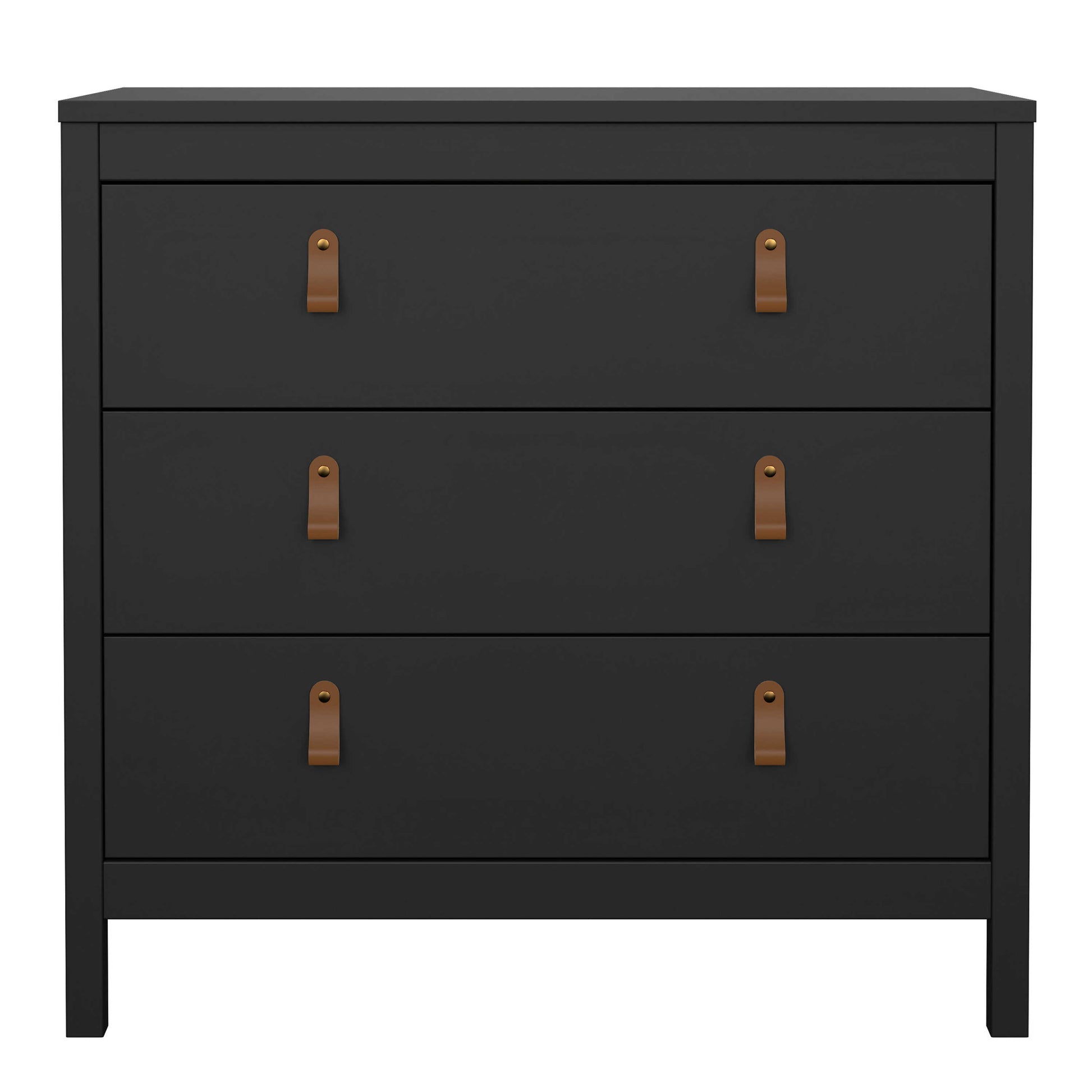 Wildberry Matt Black Chest 3 Drawers Leather Handles
