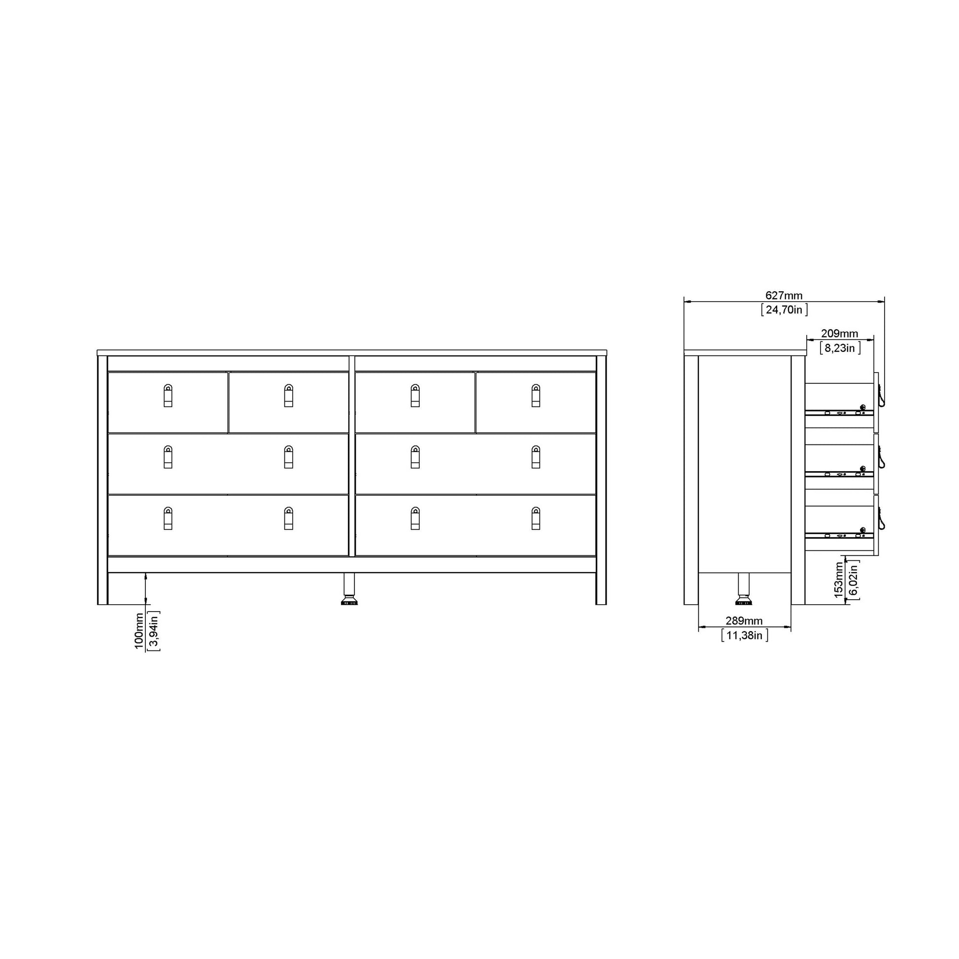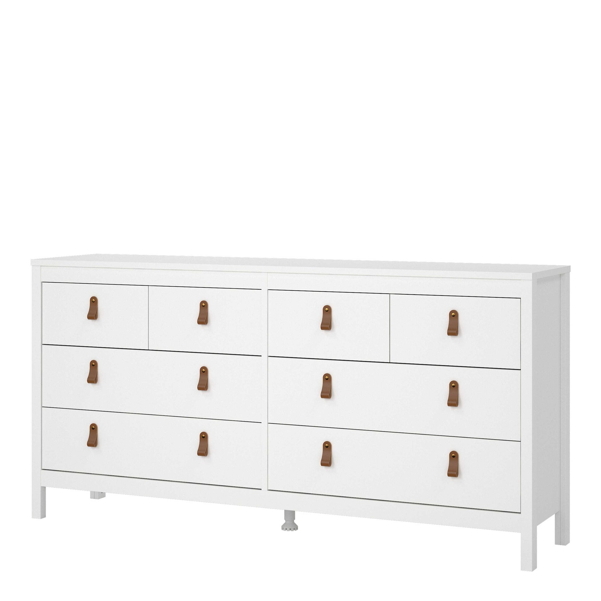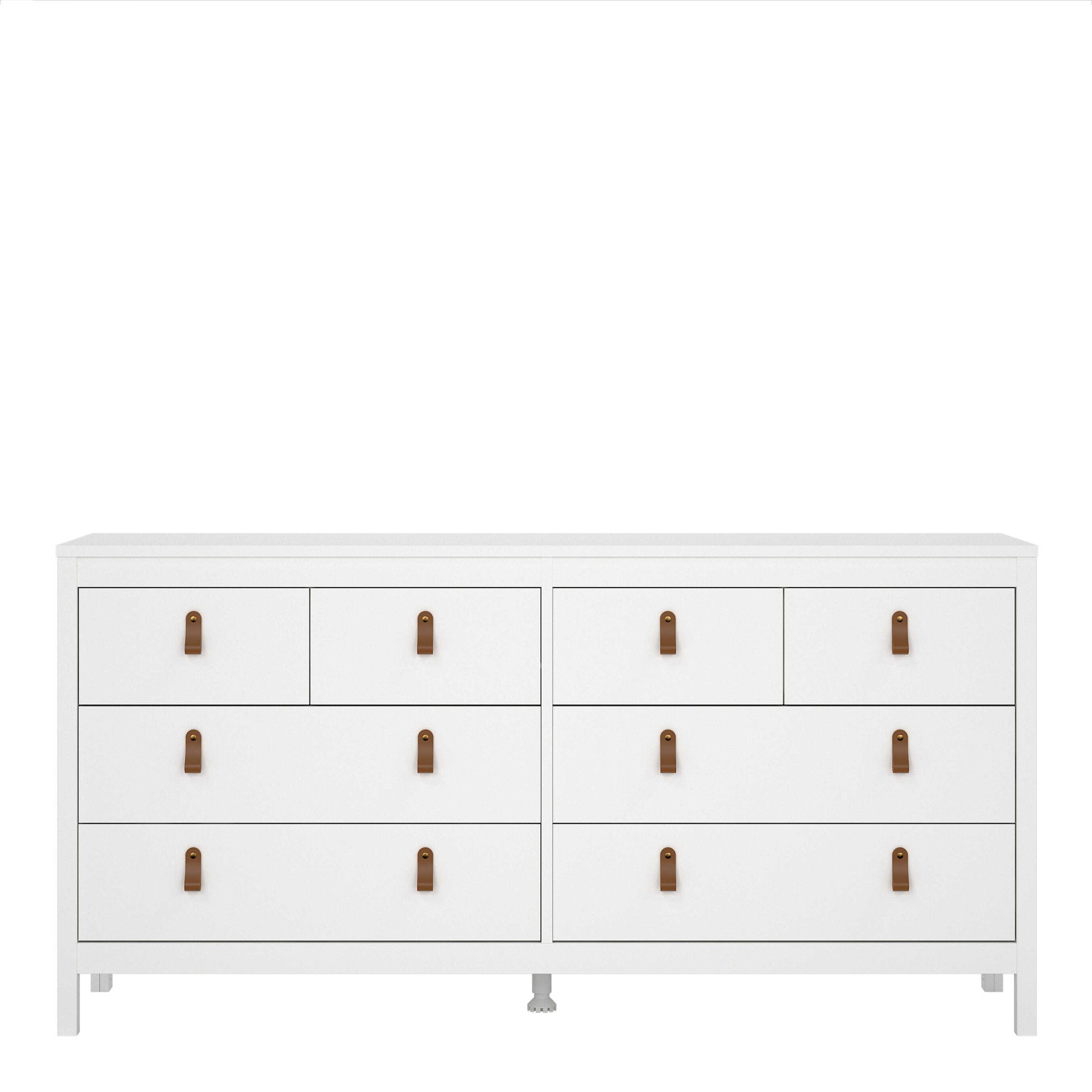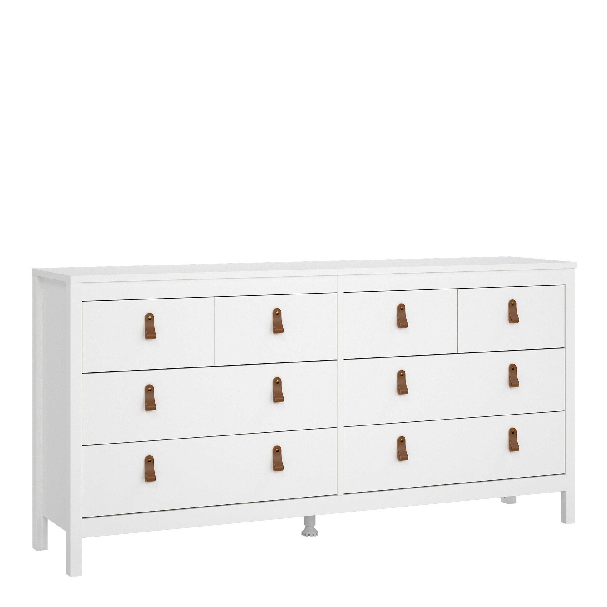 Wildberry Matt White Wooden Double Dresser 8 Drawers Leather Handles