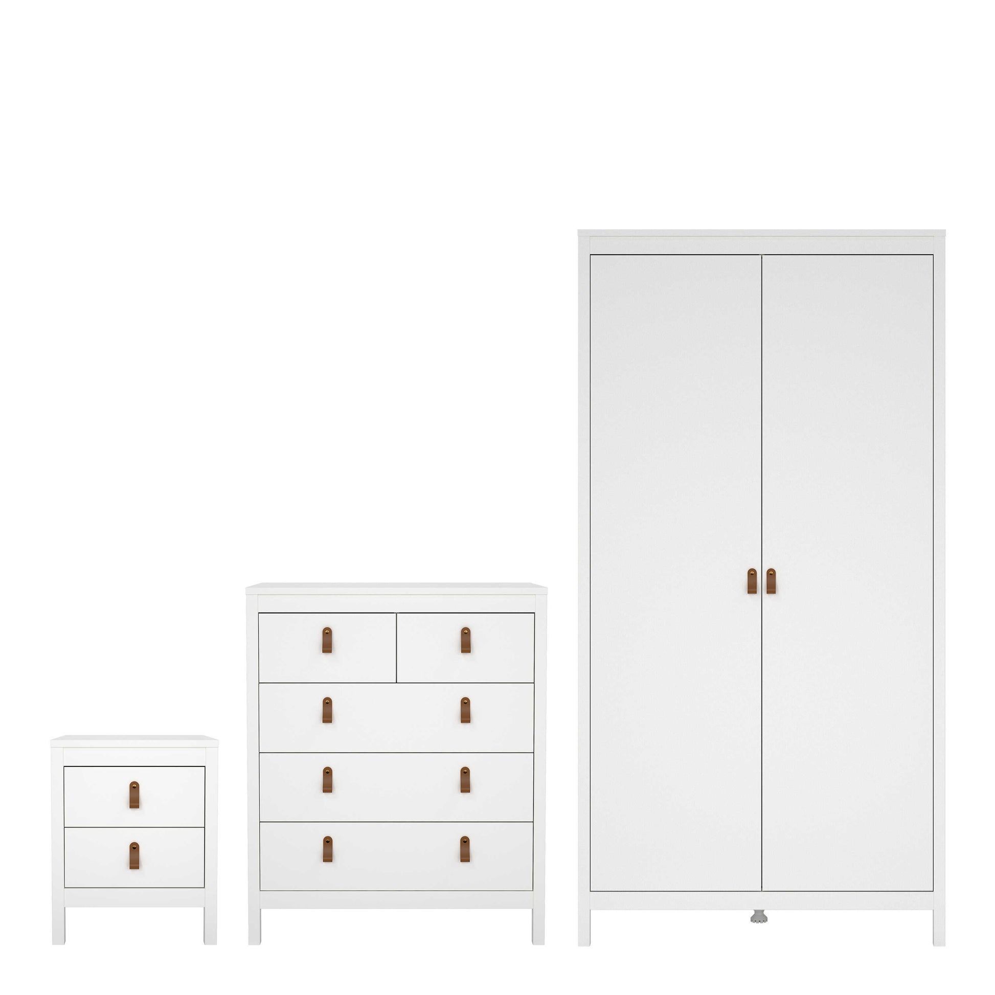 Wildberry 3 Piece Matt White Bedroom Furniture Set Leather Handles