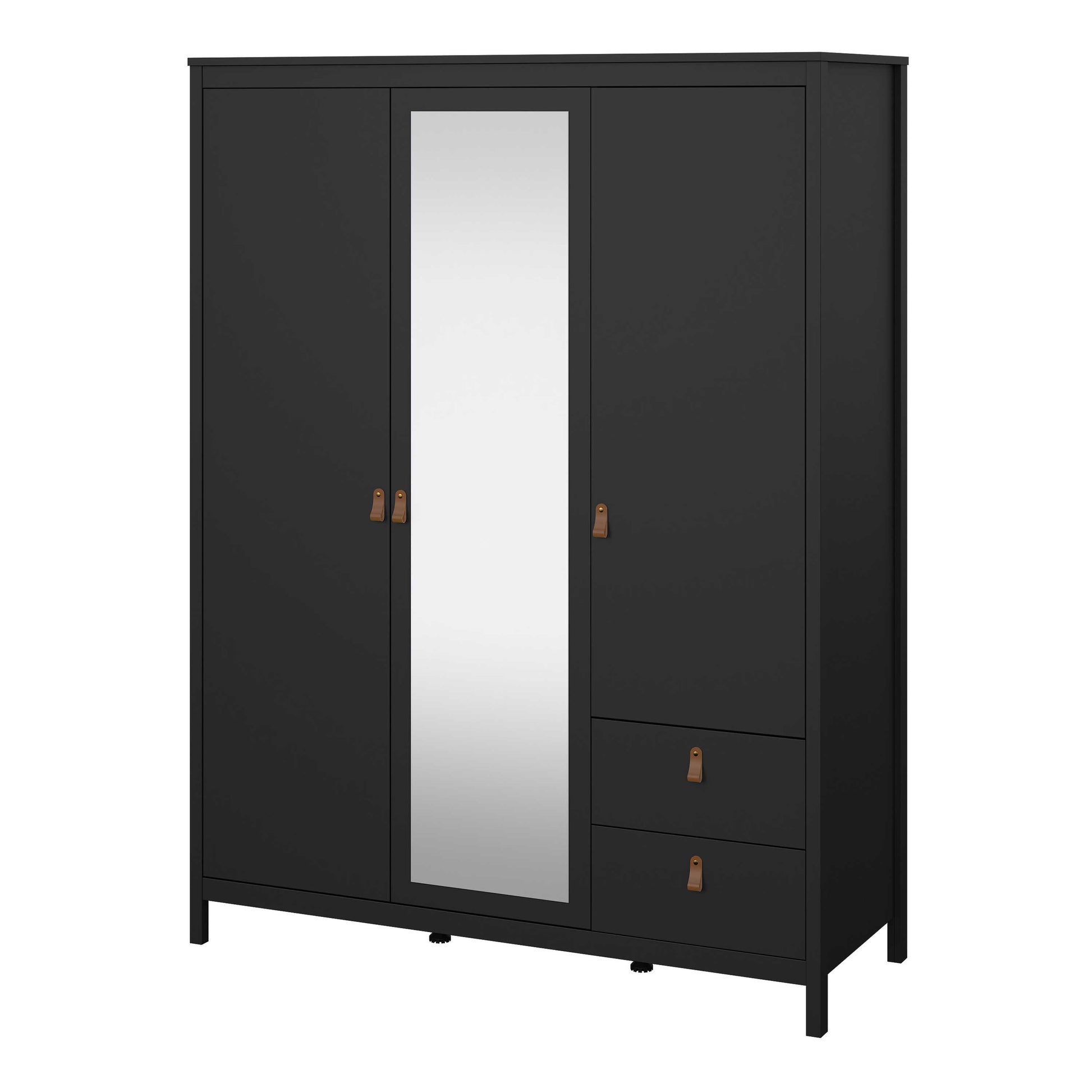 Clean lines and a deep black finish give this three door wardrobe a confident modern presence that instantly sharpens the room. Elegant proportions keep the look calm and composed, while simple metal handles add a refined touch without visual noise. One mirrored door brings a subtle sense of polish and everyday ease, helping the space feel brighter and more considered.