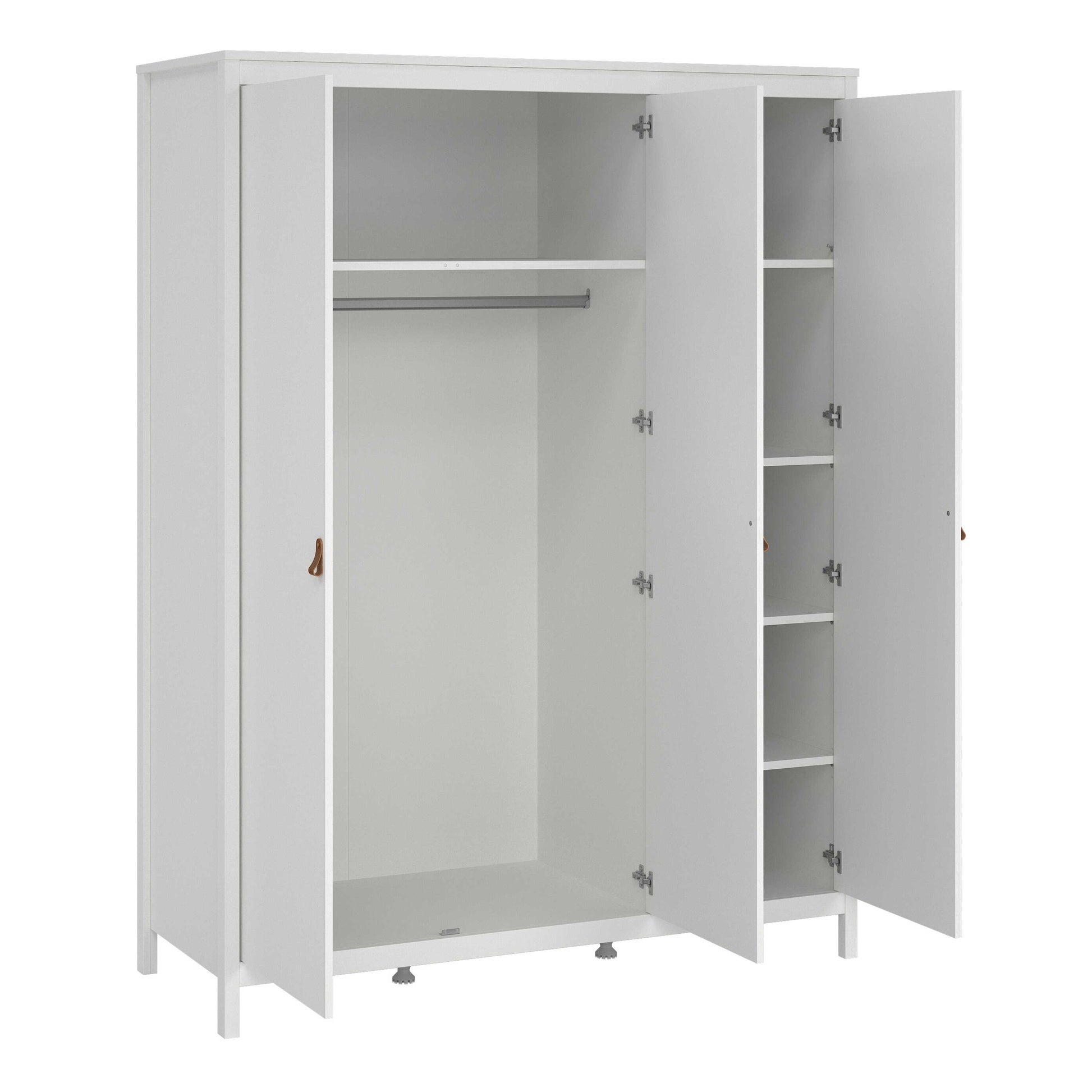 Wildberry Matt White Wardrobe 3 Doors Leather Handles