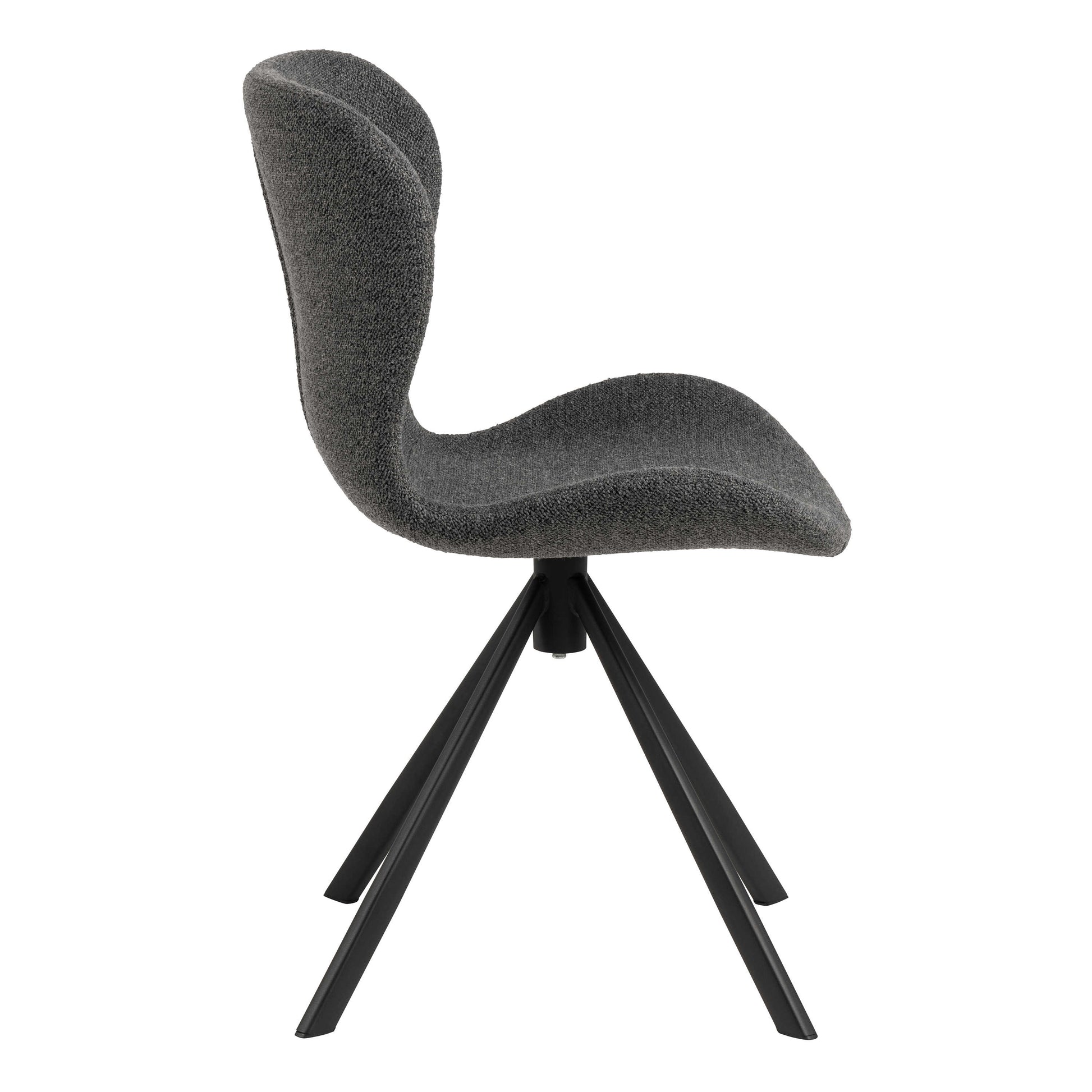 Designed to bring motion and mood to the table, these swivel dining chairs introduce a confident layer of texture through deep anthracite bouclé. The fabric feels rich and inviting, while the softly curved seat keeps things comfortable and relaxed. Zigzag stitching adds a subtle edge, giving the design a modern rhythm that suits lively dining spaces.