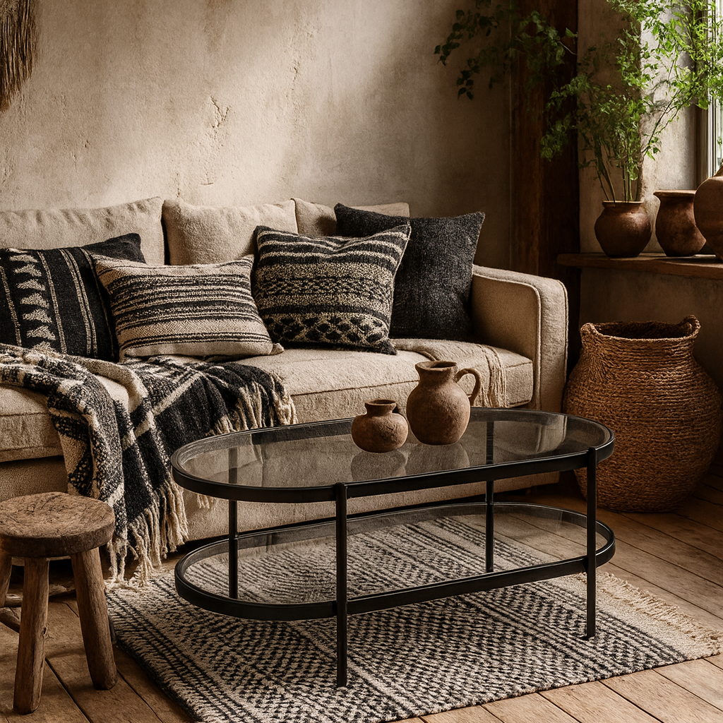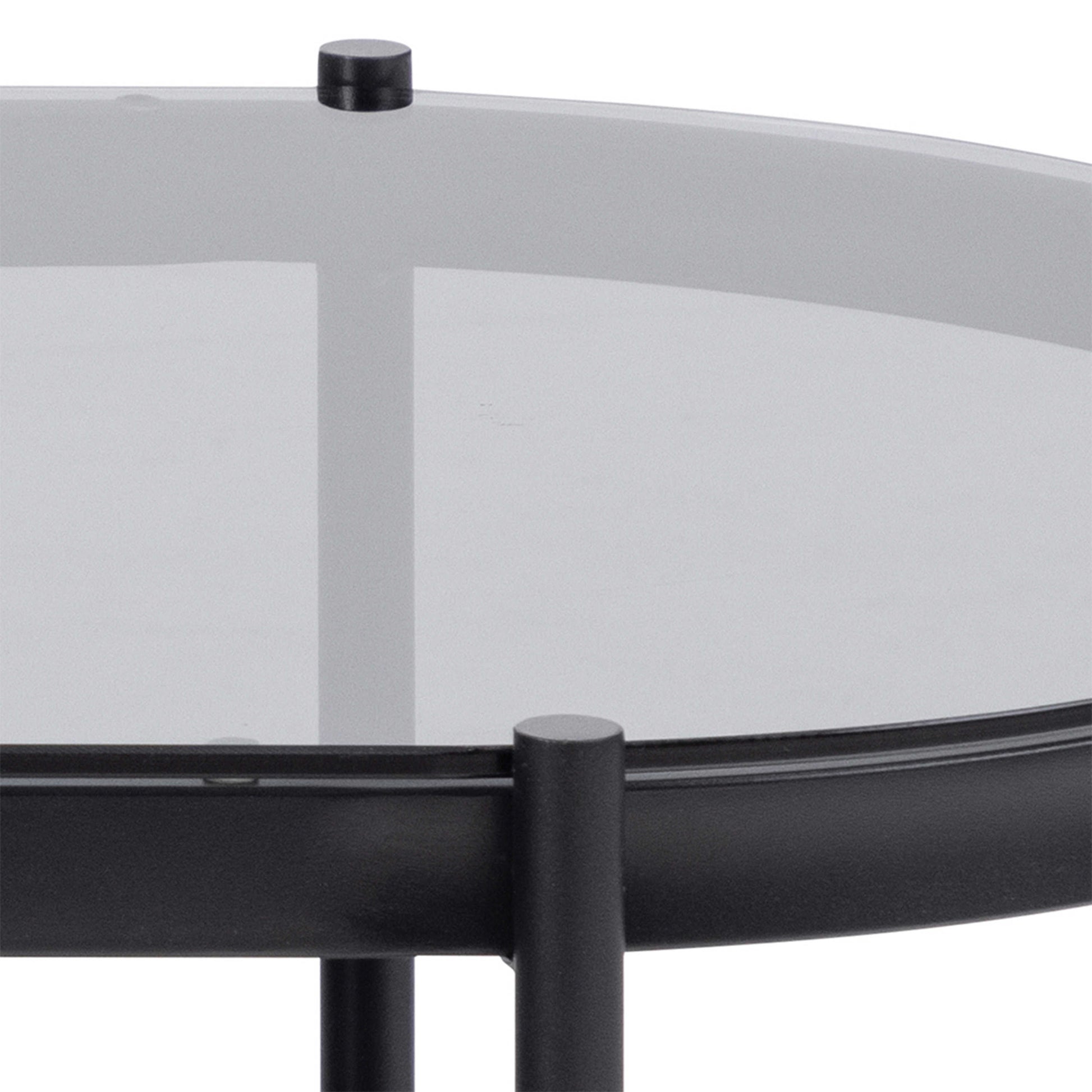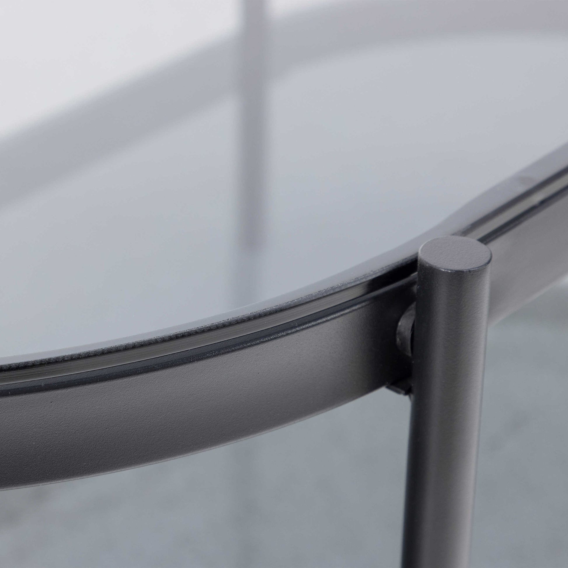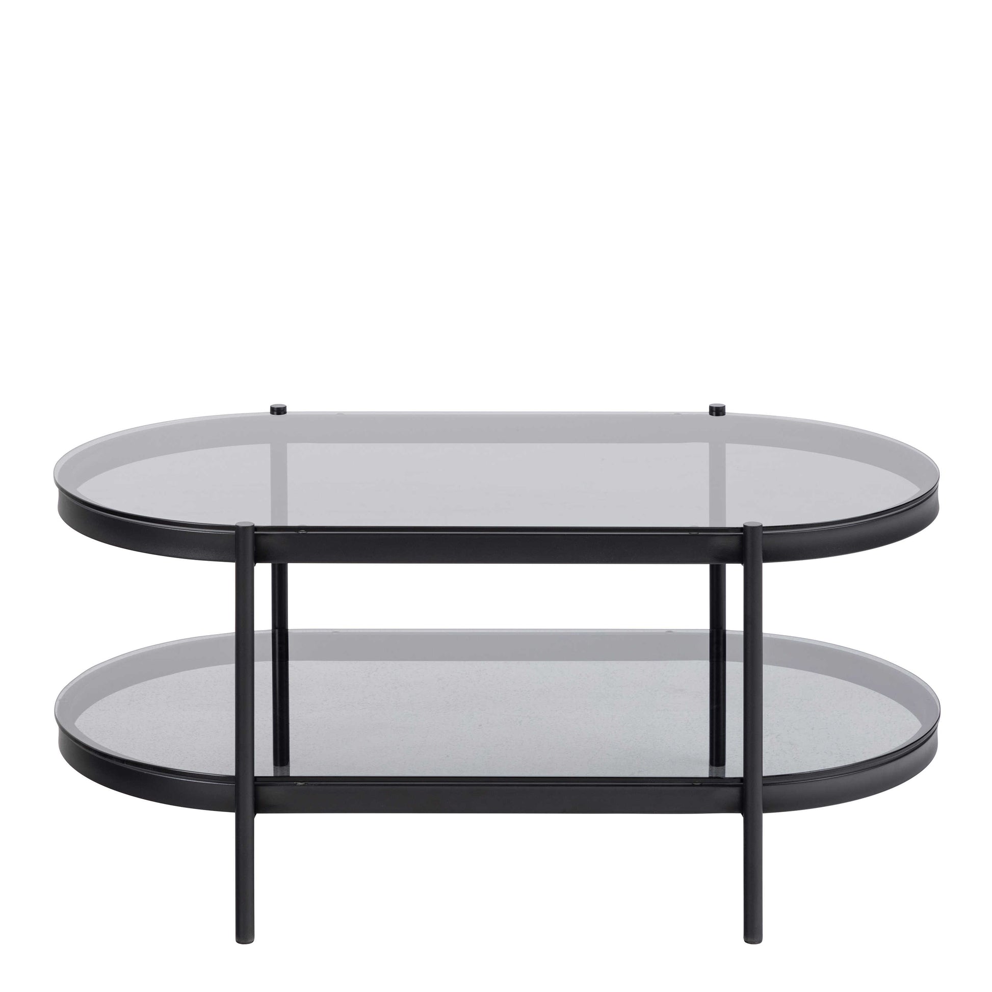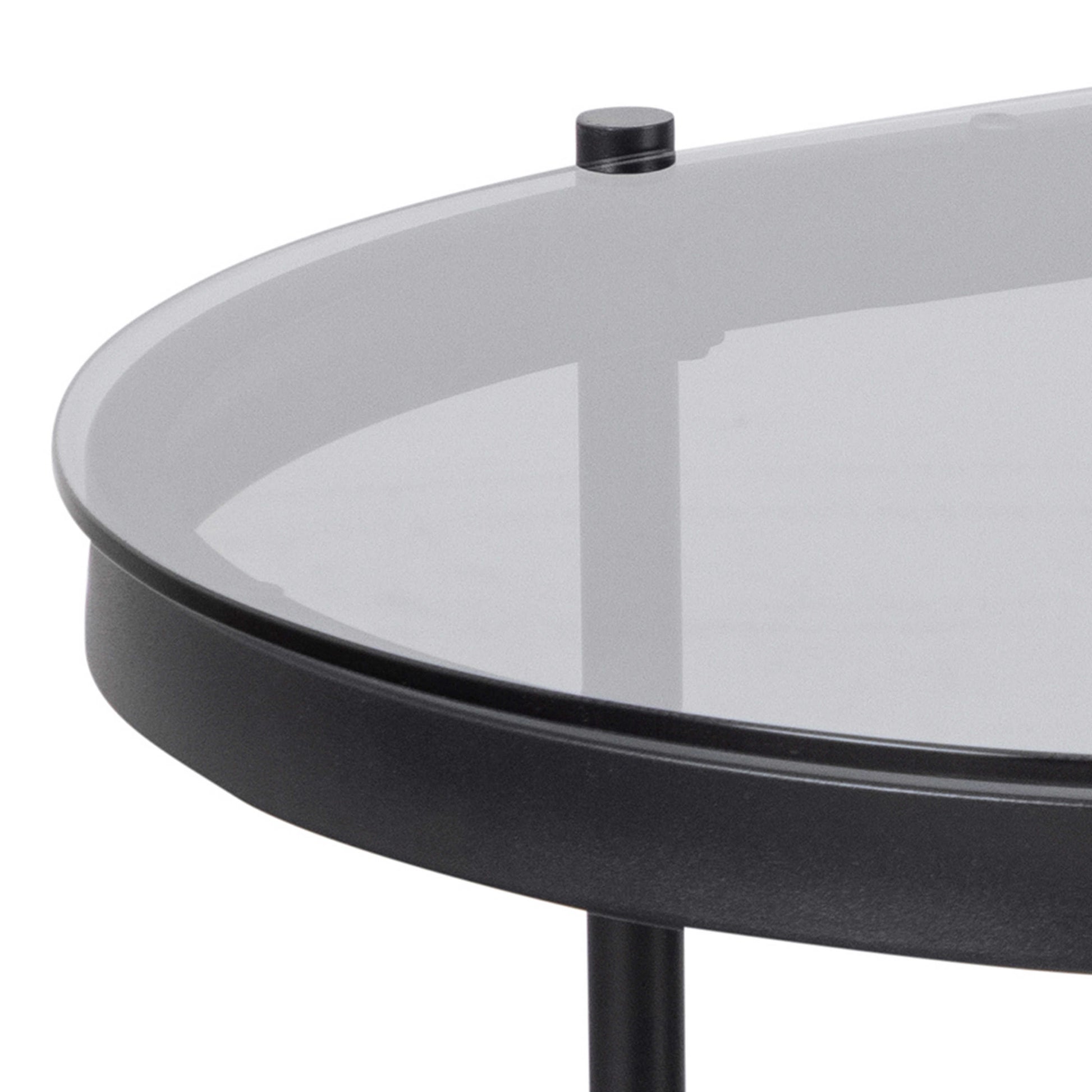 Soft drama meets modern living with this oval coffee table, where smoked glass introduces depth and a subtle grey tone to the space. The curved shape adds a gentle elegance, creating a refined focal point that feels light yet expressive within contemporary interiors.