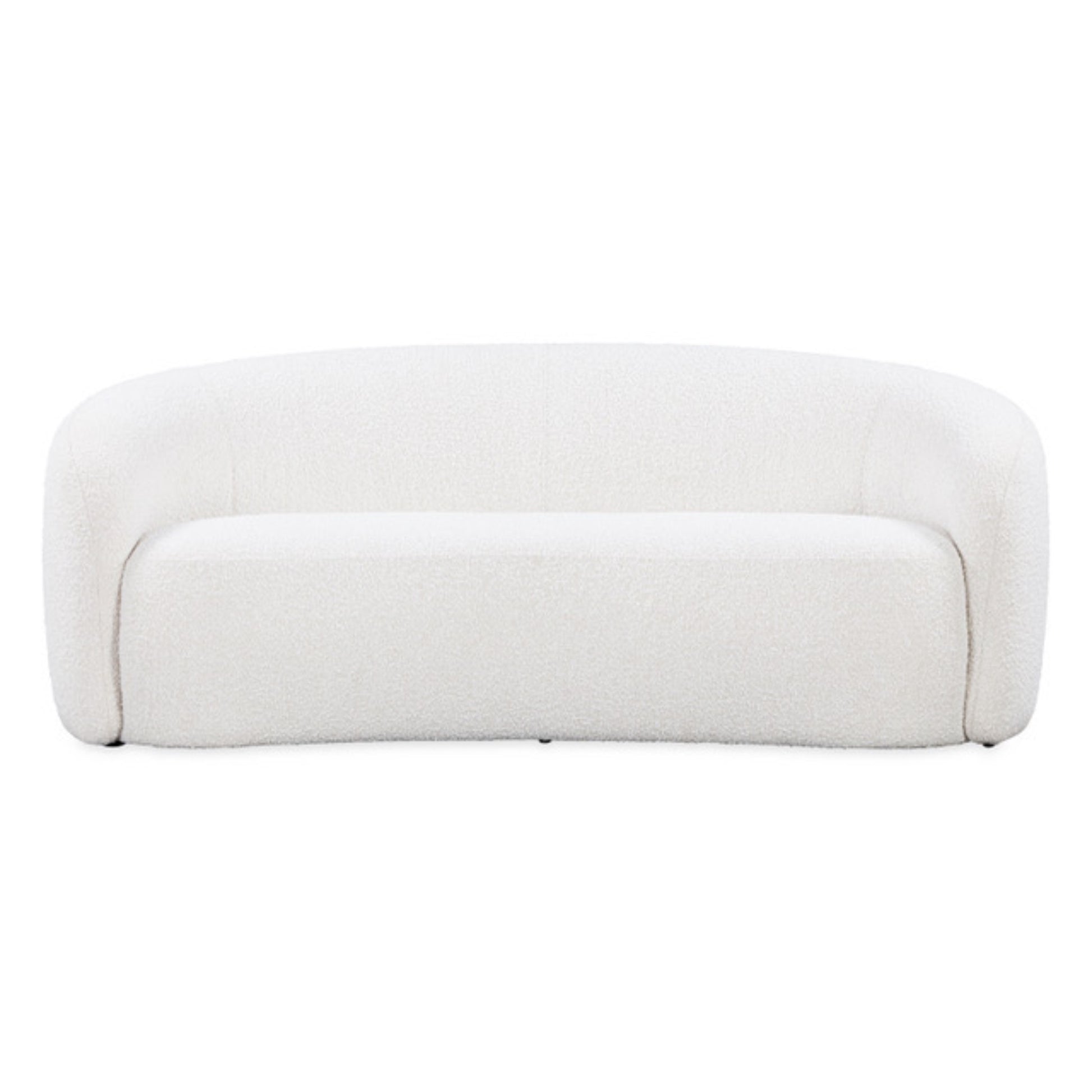 Graceful and inviting, this piece captures the essence of modern organic design. The soft white bouclé upholstery creates a beautifully textured finish, while the sculptural curved silhouette wraps you in comfort. Its seamless form and low profile bring calm sophistication — an instant statement of understated luxury.