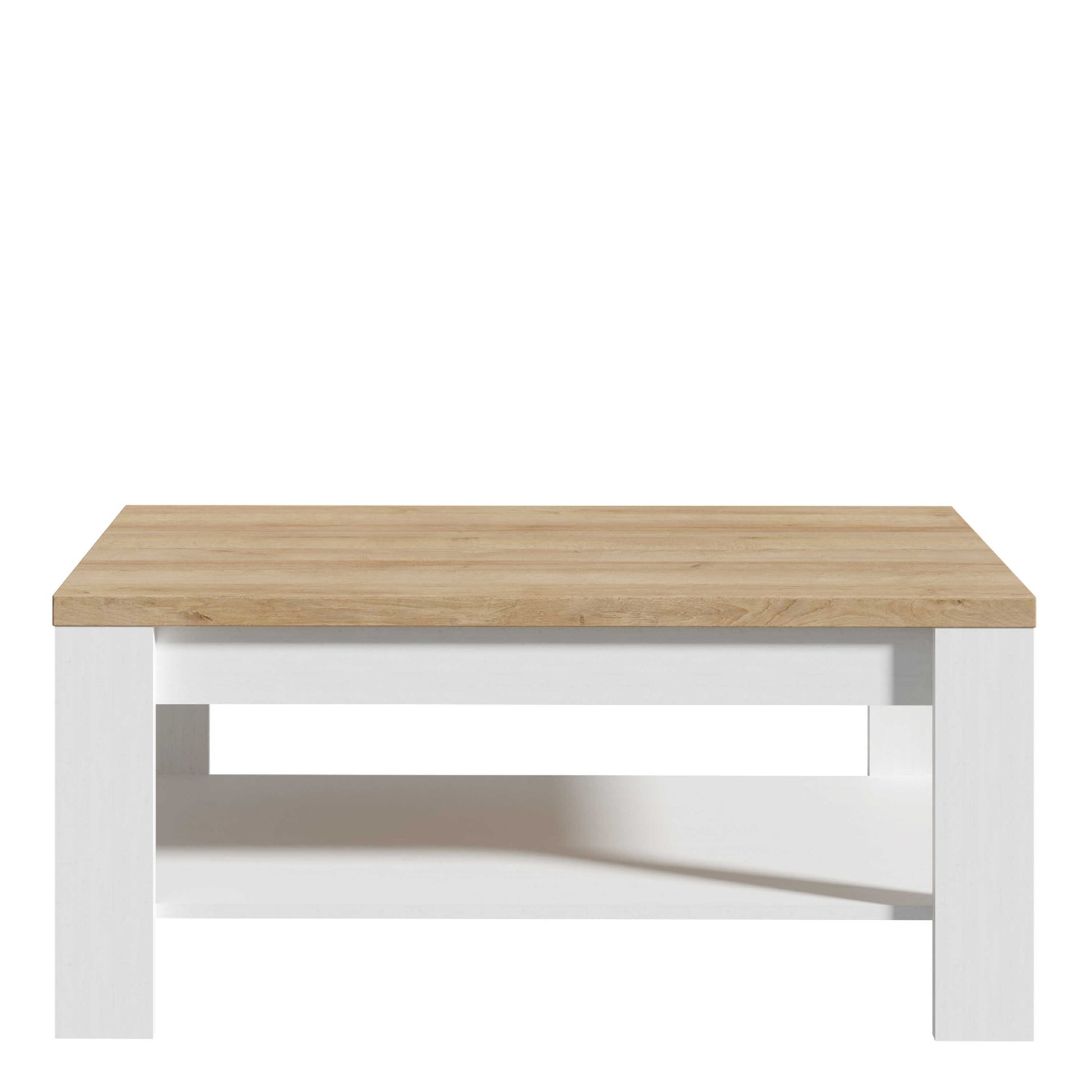Bramblecroft White and Natural Oak Wood Coffee Table Bottom Shelf