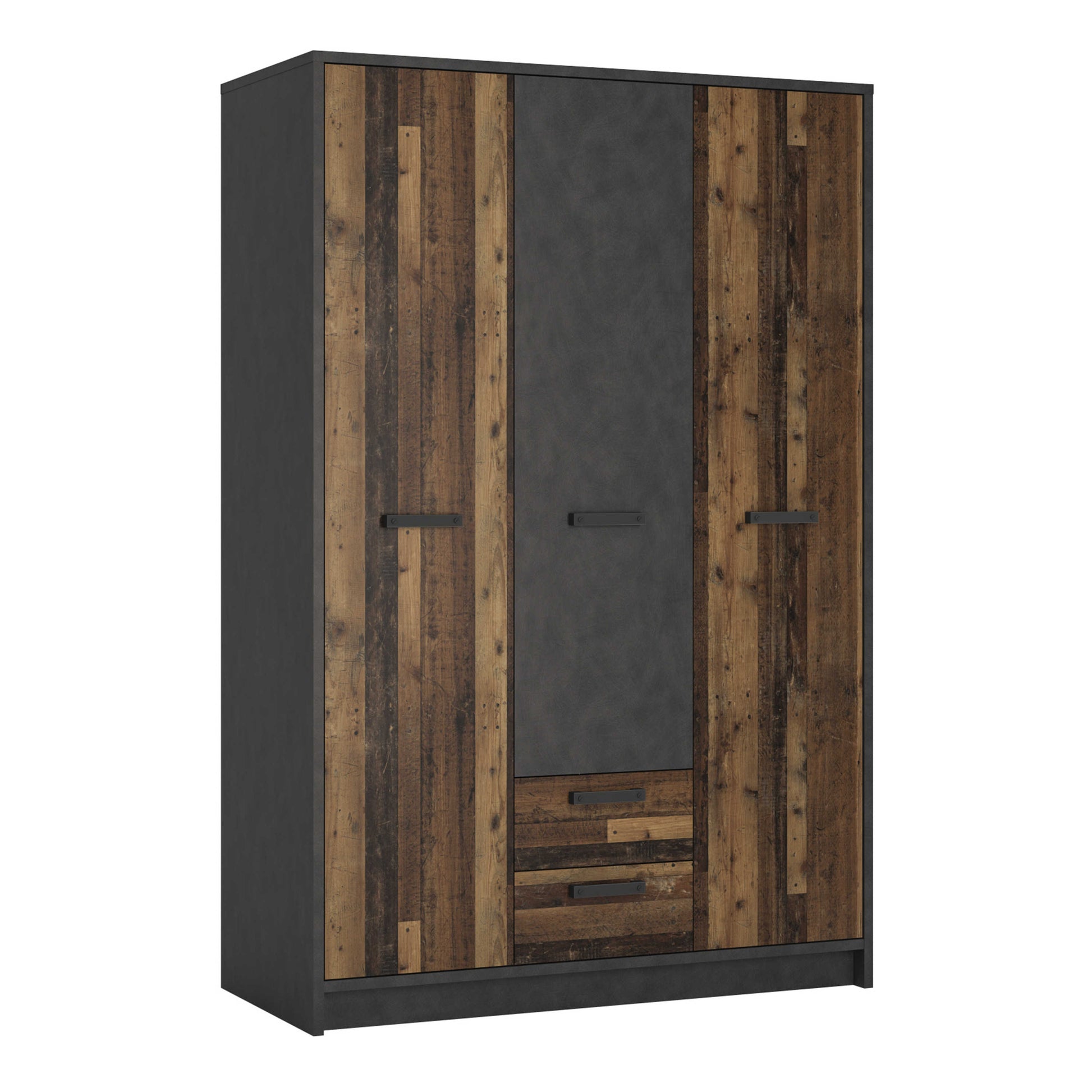 Whimwick Walnut and Dark Matera Grey 3 Door Wardrobe 2 Drawers