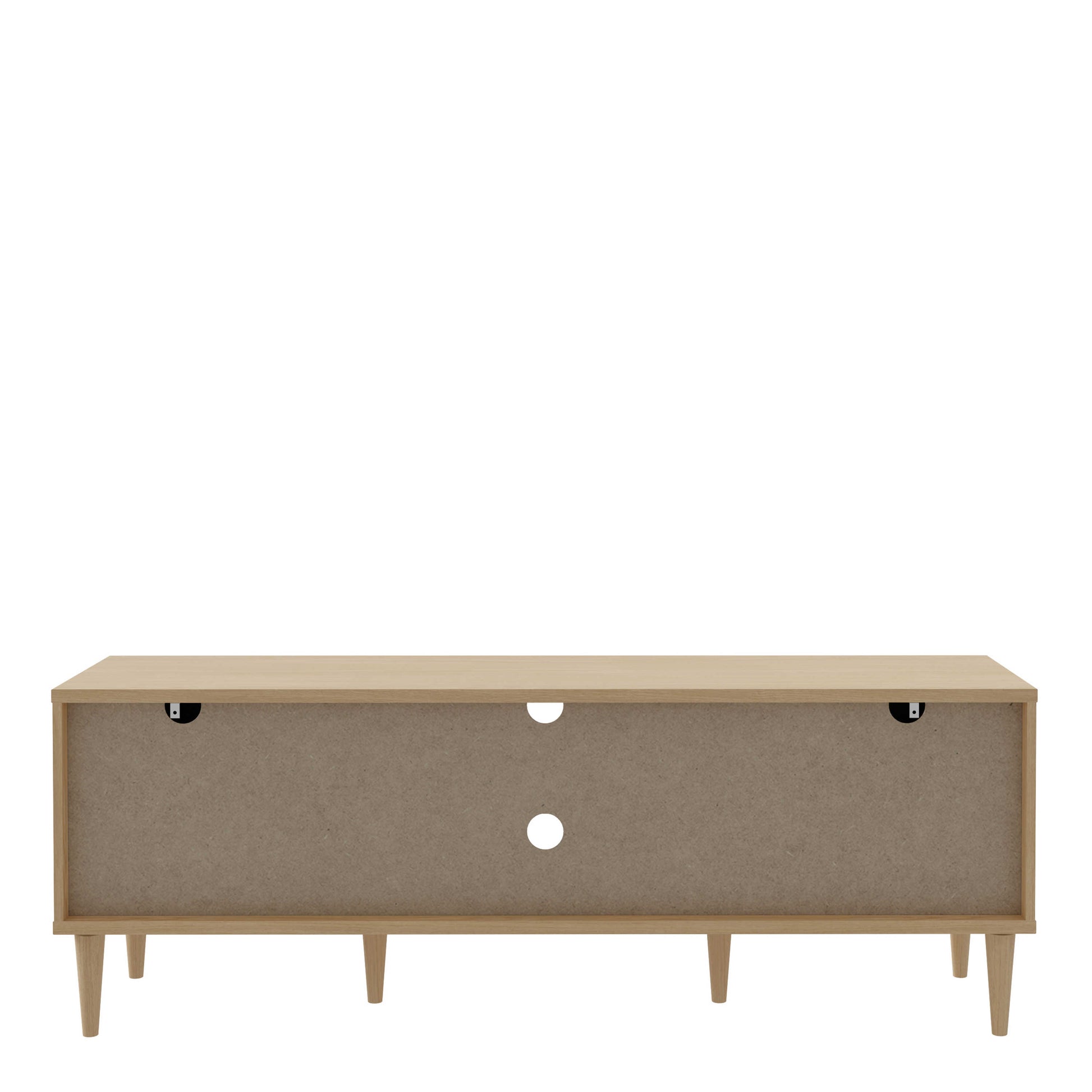 Practical storage is built in with a balance of closed cupboards and an open shelf, giving media essentials a clear home without clutter. Tapered legs lift the design, keeping it light on the floor and easy on the eye. It is a piece that blends function and atmosphere, offering everyday organisation with an easy going, contemporary attitude.