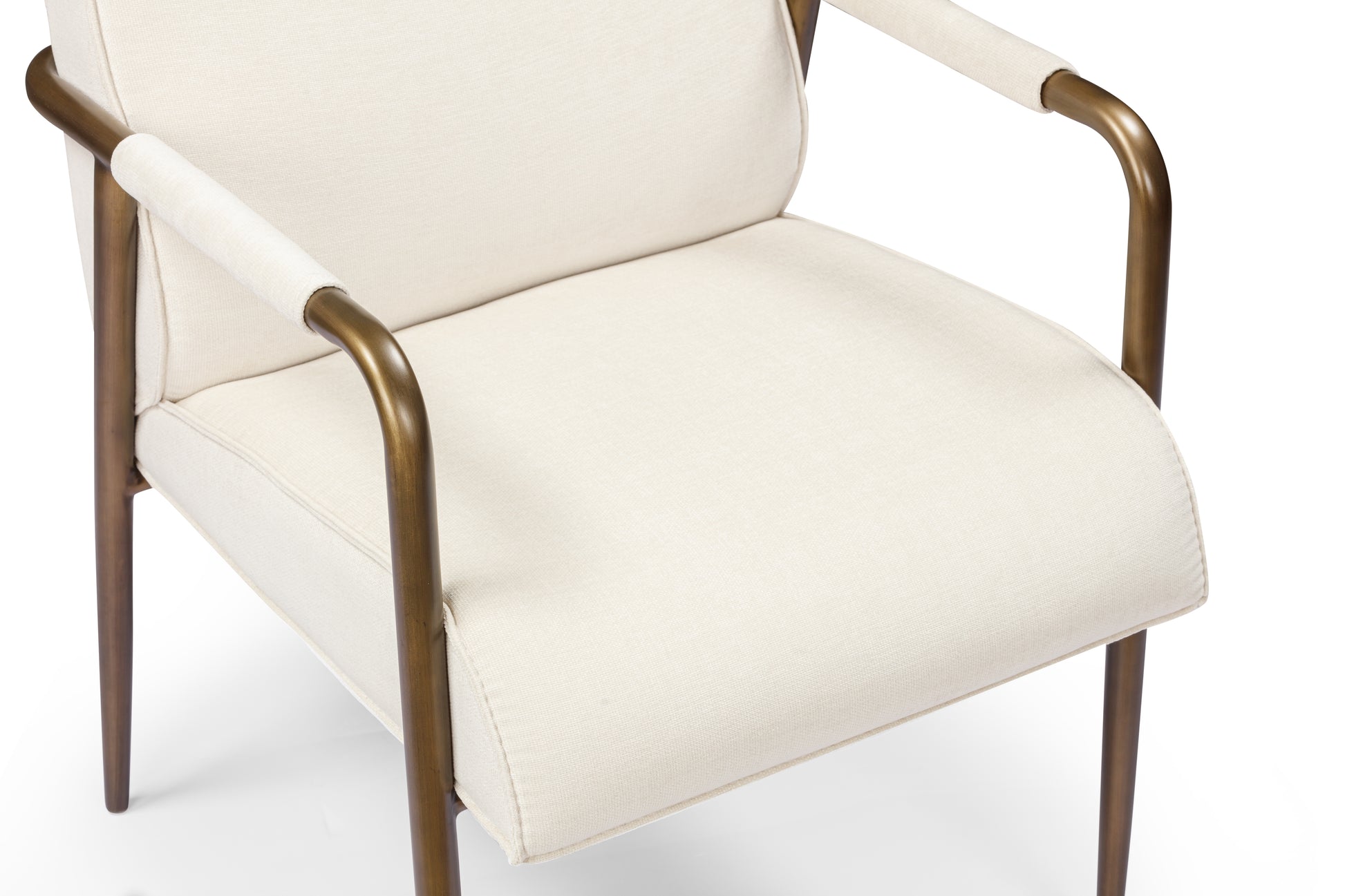 Understated and graceful, this piece brings a sense of quiet luxury to contemporary interiors. The cream linen upholstery adds softness and light, while the curved brass arms and tapered legs lend a refined, sculptural touch. Designed with both comfort and elegance in mind, it strikes the perfect balance between timeless design and modern craftsmanship.