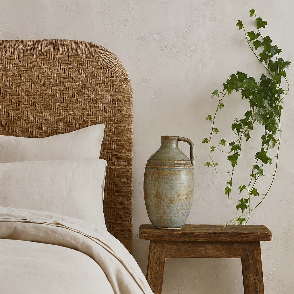 Its textured surface and organic finish make it a characterful piece, perfect for displaying dried grasses, branches, or simply as a standalone accent. Whether styled in a farmhouse kitchen, a bohemian nook, or layered into a modern rustic interior, it brings a quiet authenticity and artisanal charm.