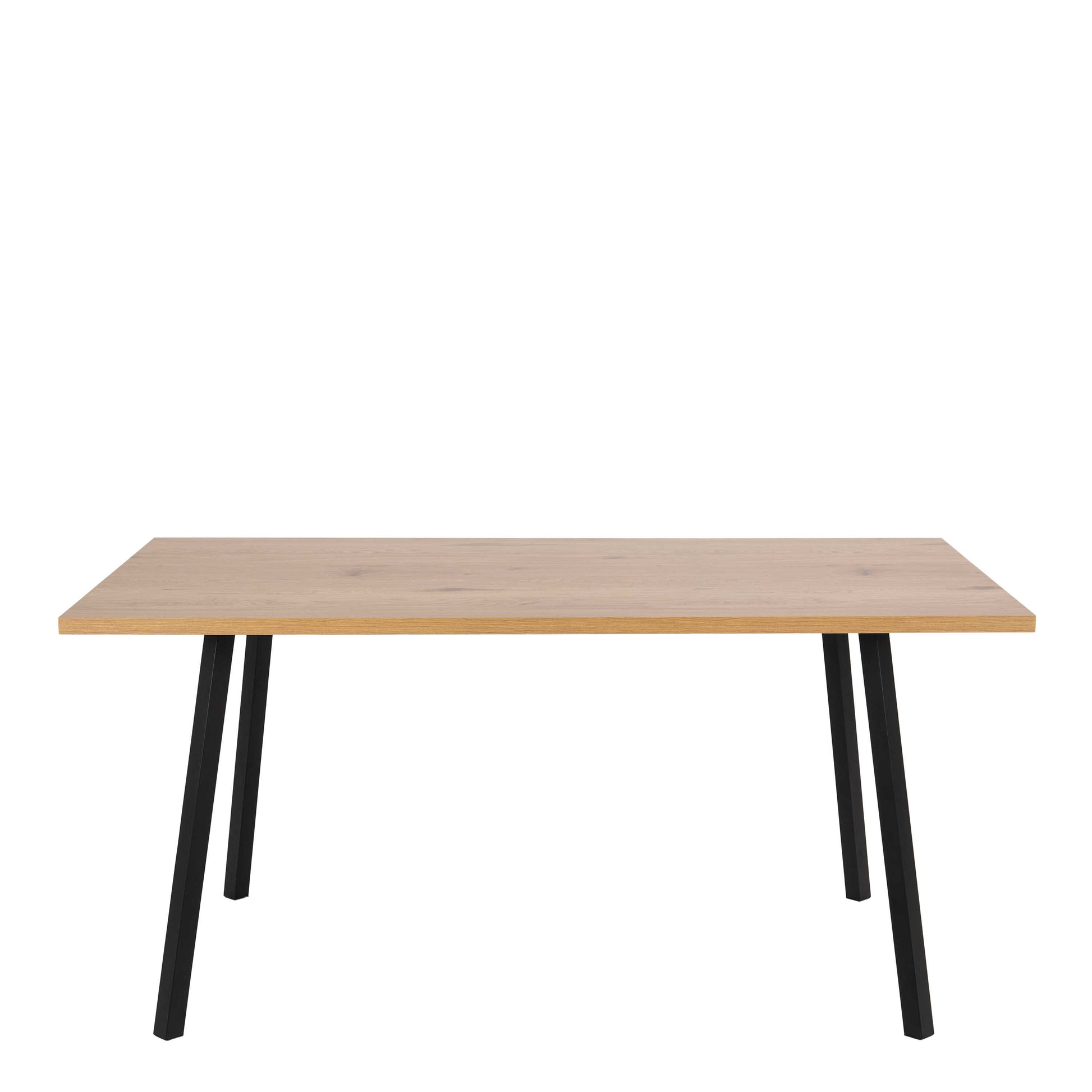 This dining table brings an easy rustic charm with a matt wild oak effect top that feels warm and grounded. The black powder coated steel base adds a cool industrial edge, giving the piece a relaxed modern attitude that works effortlessly in contemporary spaces. The angled metal legs keep the look balanced and confident while still feeling casual.