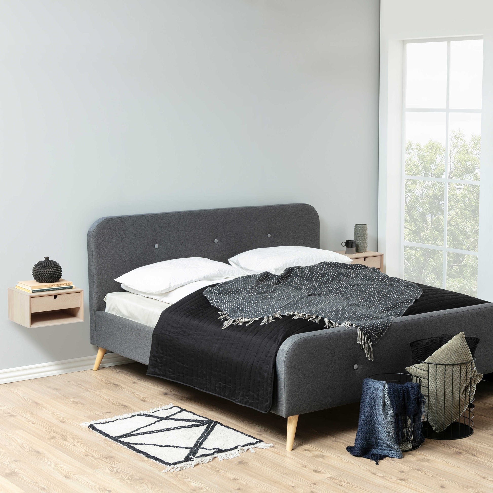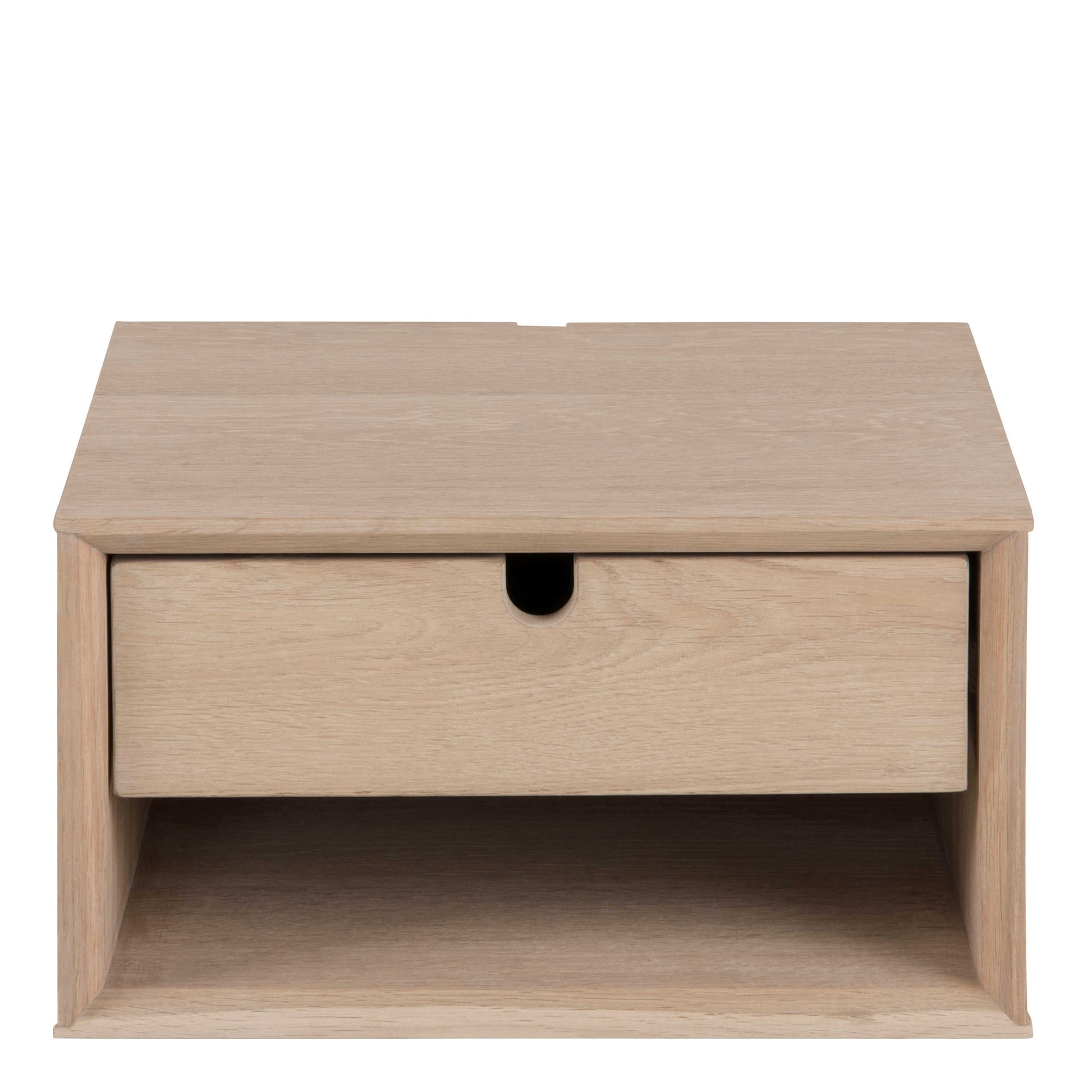 Floating neatly beside the bed, this wall mounted bedside table keeps the room feeling open and uncluttered. The oak look finish adds natural warmth, balancing modern calm with an easy lived in feel. Its compact form suits contemporary bedrooms where space and simplicity matter, creating a light visual presence without losing purpose.