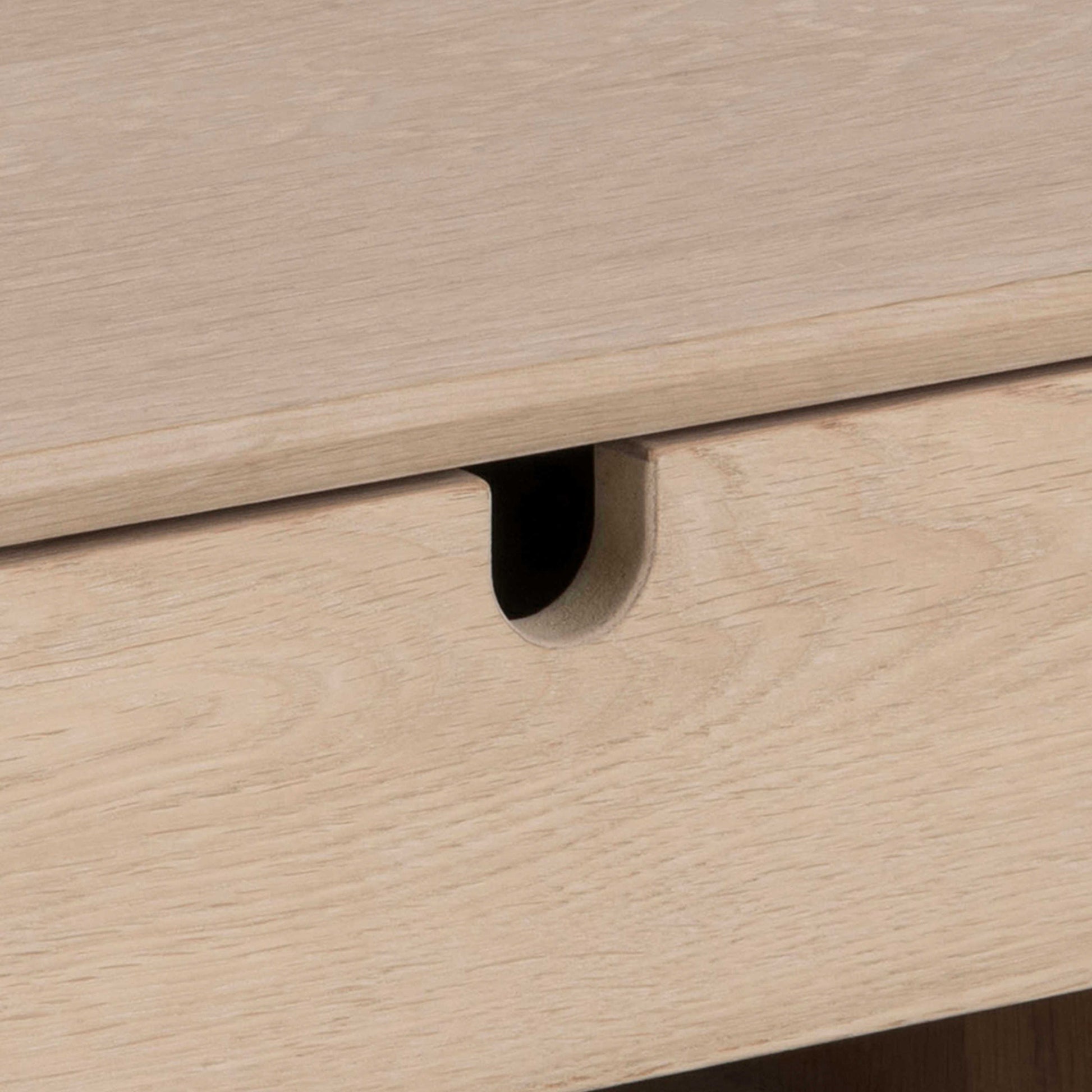 Designed for everyday ease, a single drawer keeps nighttime essentials close but out of sight. A subtle half moon cut out at the back adds practical detail while keeping the design clean. Adaptable to different bed heights, it delivers smart storage with a relaxed modern attitude.