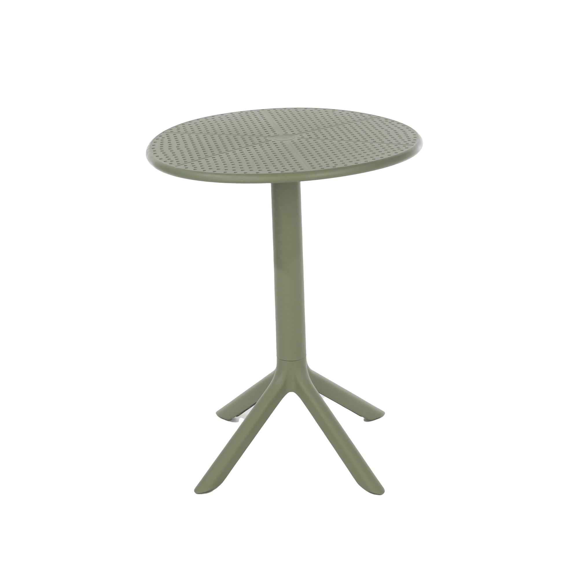 The Cesme bistro set brings classic form to modern outdoor living. Finished in moss green, it features a round table and two lattice-pattern chairs made from UV-resistant plastic and weather-proof metal legs.