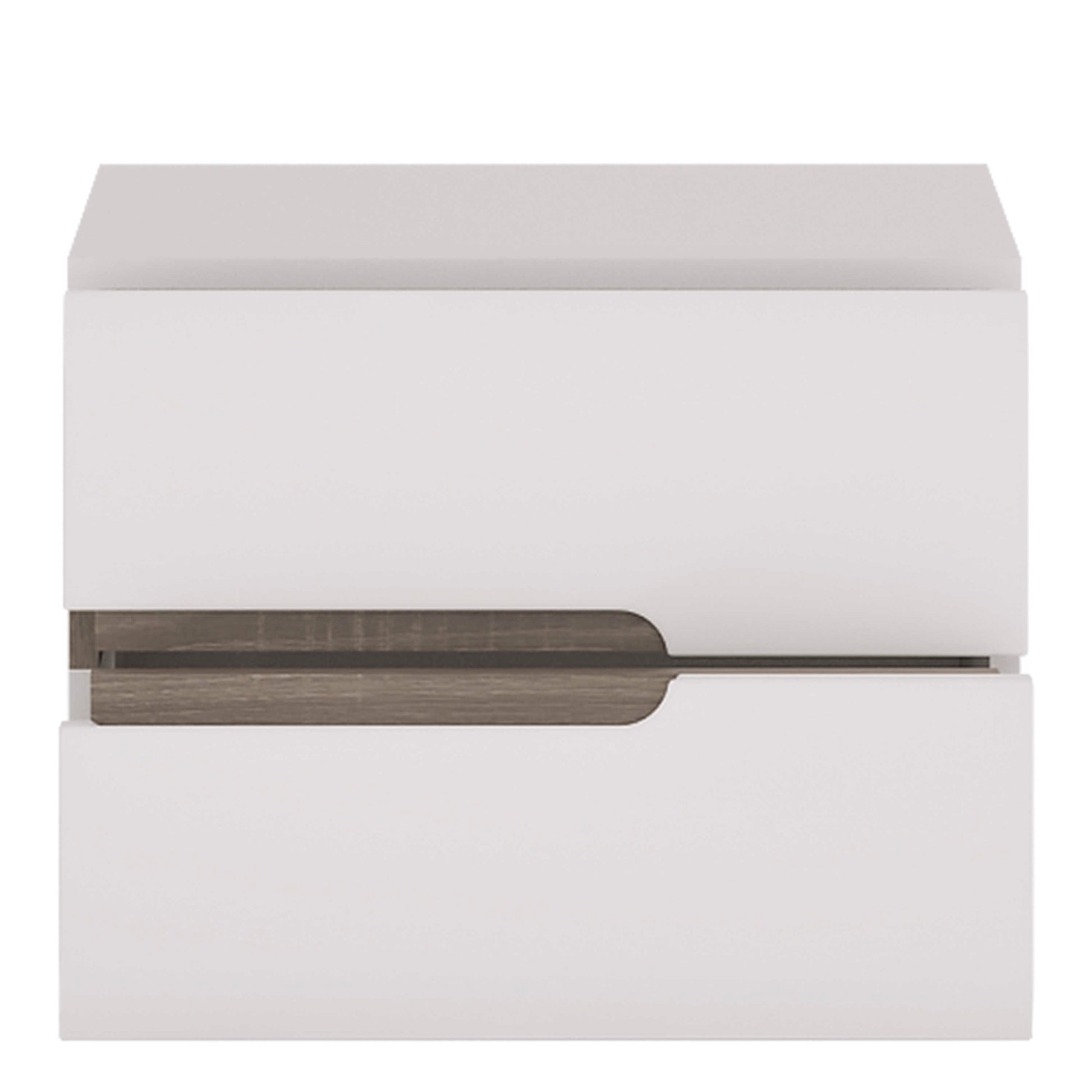 Practicality is built straight in, with two drawers offering discreet storage for night-time essentials. Clean lines keep the look uncluttered, while the oak accent doubles as a subtle design highlight. It is a bedside piece that feels considered and contemporary, blending everyday function with an effortlessly modern attitude.