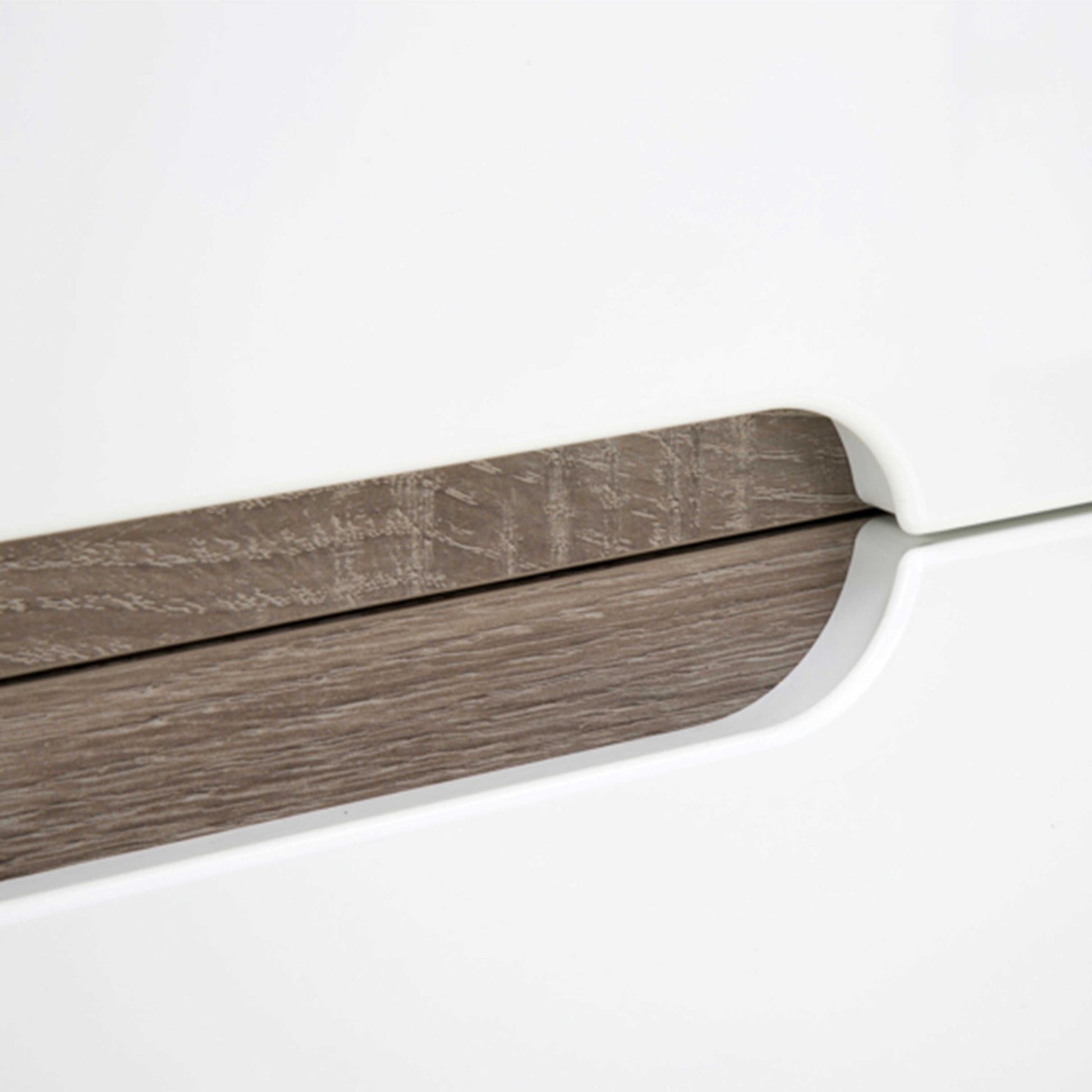 Fresh and balanced, this bedside table brings a calm modern vibe into the bedroom with crisp white surfaces softened by warm oak toned detailing. The contrast feels light and intentional, adding character without visual noise. Its compact form keeps the space feeling open, making it an easy fit beside the bed while still holding its own as a design feature.