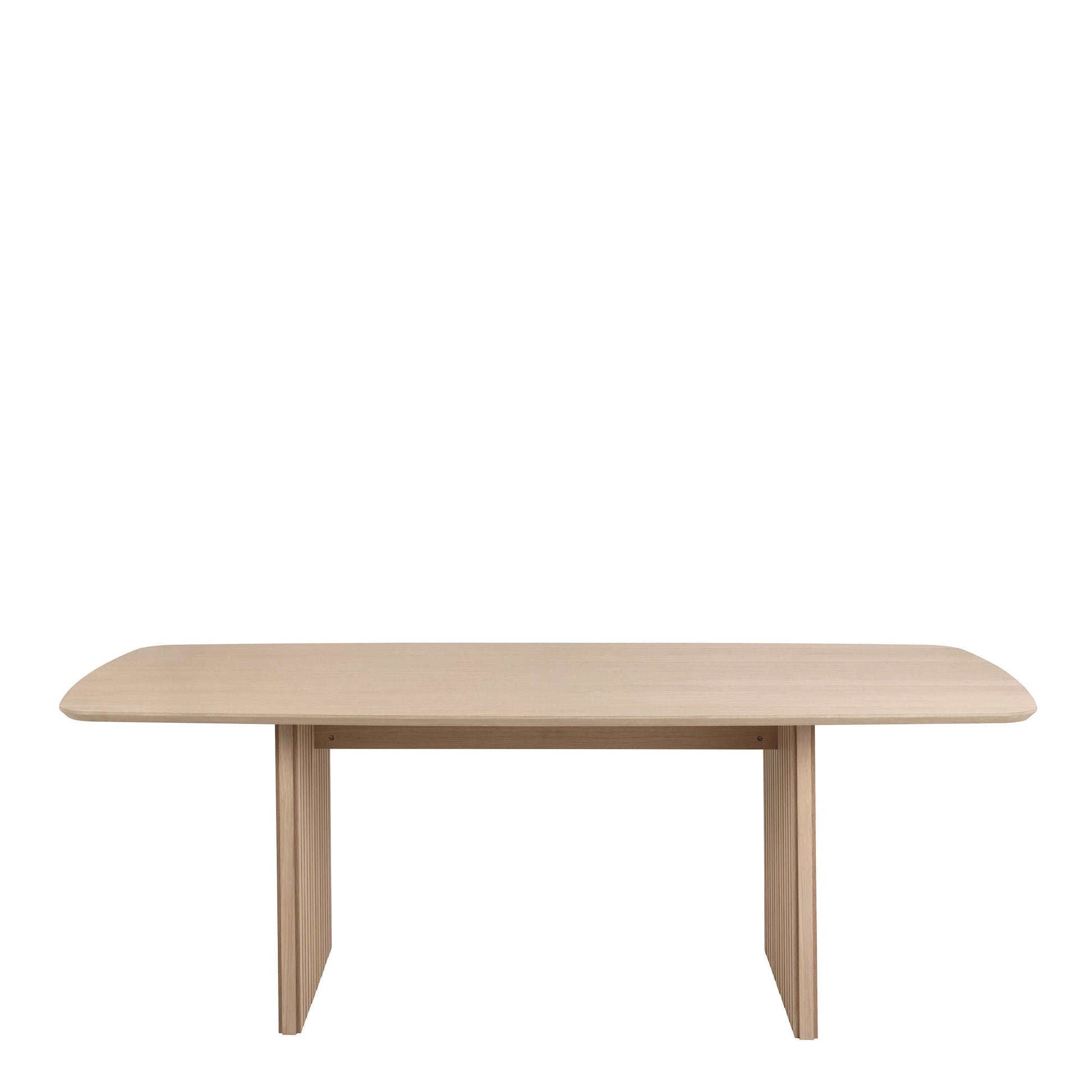 This rectangular dining table brings a soft Scandinavian calm to any dining space, blending modern organic style with the gentle warmth of white pigmented oak veneer. The smooth surface catches the light beautifully, creating an inviting atmosphere for everything from relaxed weeknight meals to those lively evenings shared with friends. At 220 x 105 cm, it offers generous space for six diners while still feeling intimate enough for smaller gatherings.