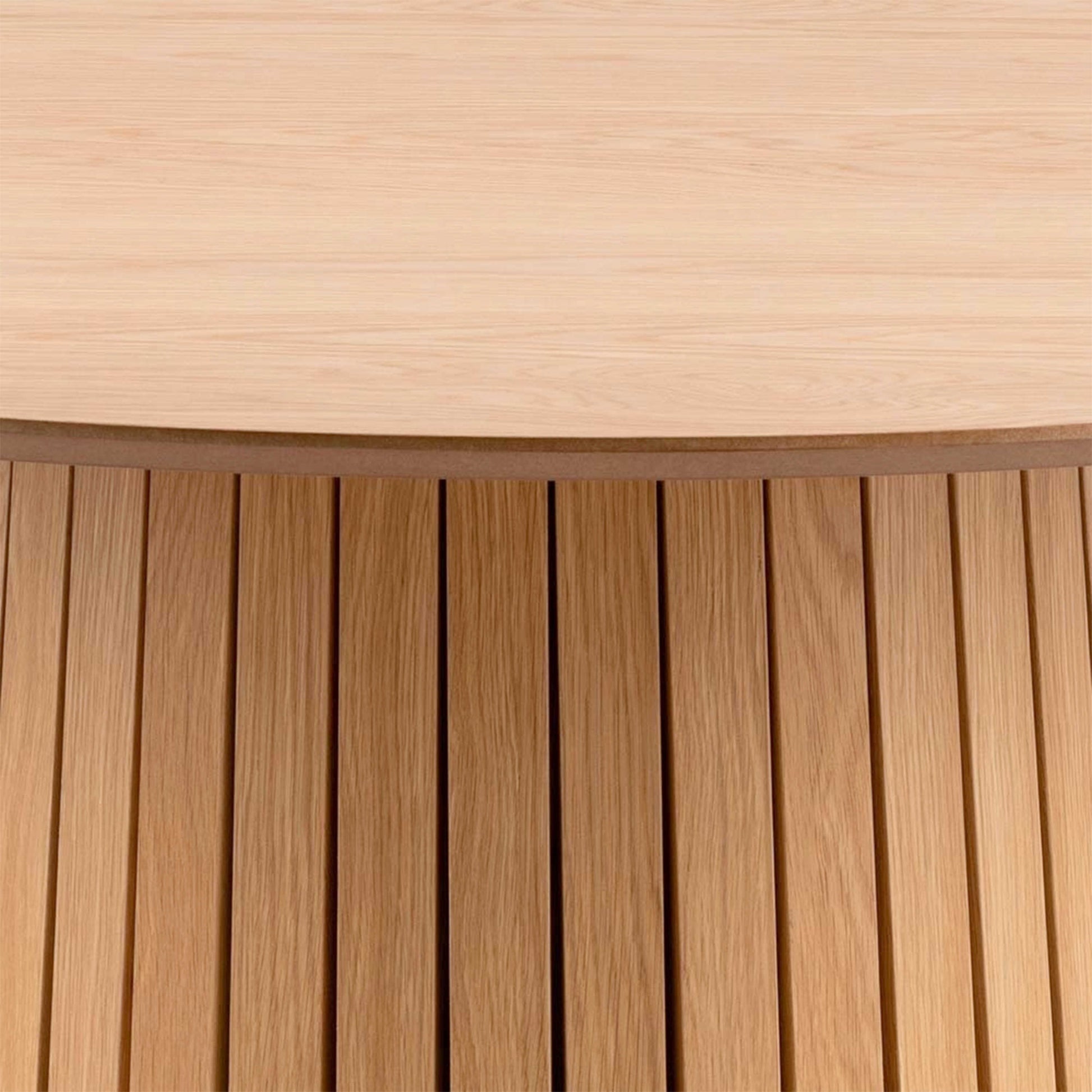 Rooted in natural warmth, this round dining table brings a calm Scandinavian mood into the home. The matt oak look surface feels soft and inviting, offering a relaxed setting for everyday meals and easy conversation. Its circular form keeps the space flowing, making it a natural fit for modern interiors that value balance and simplicity.