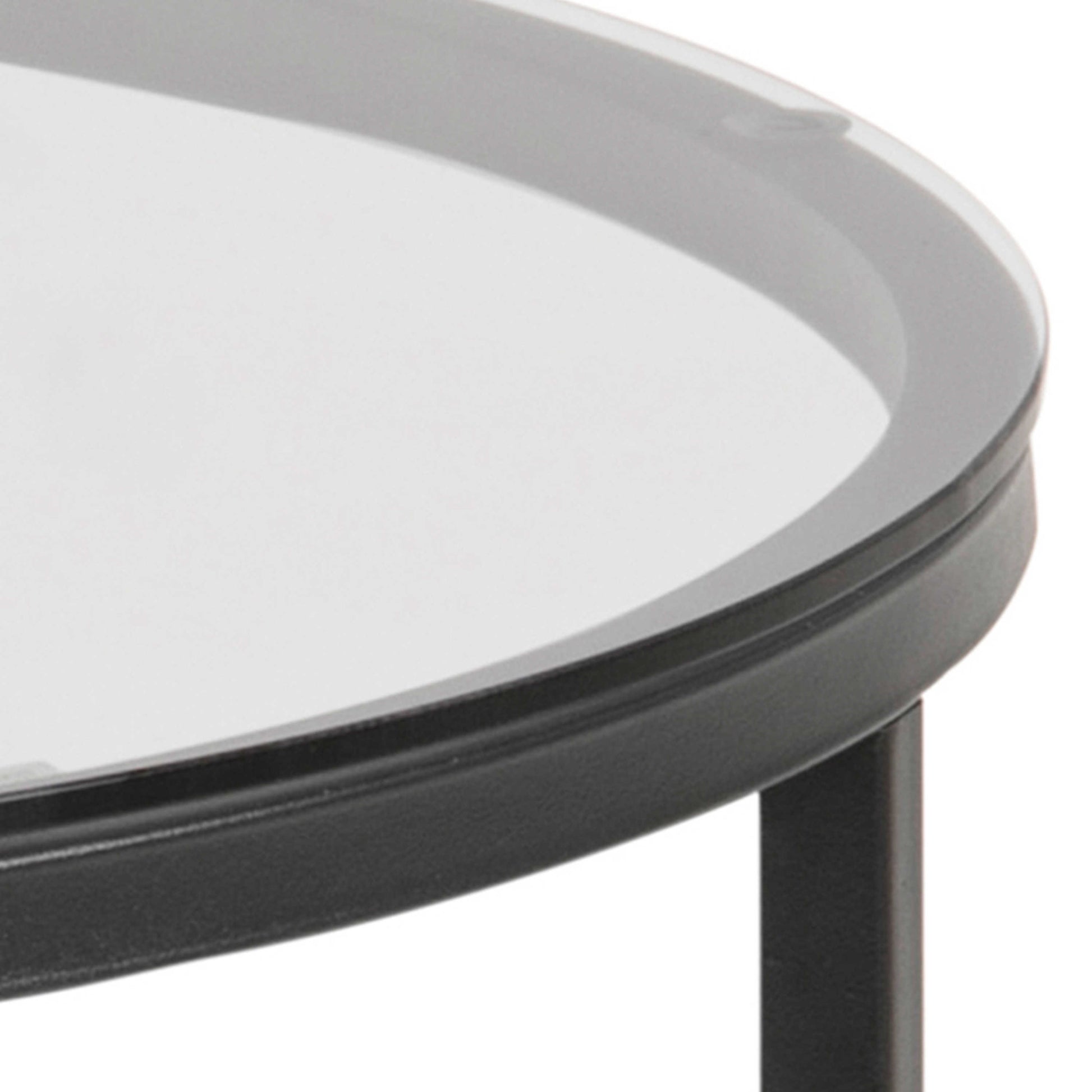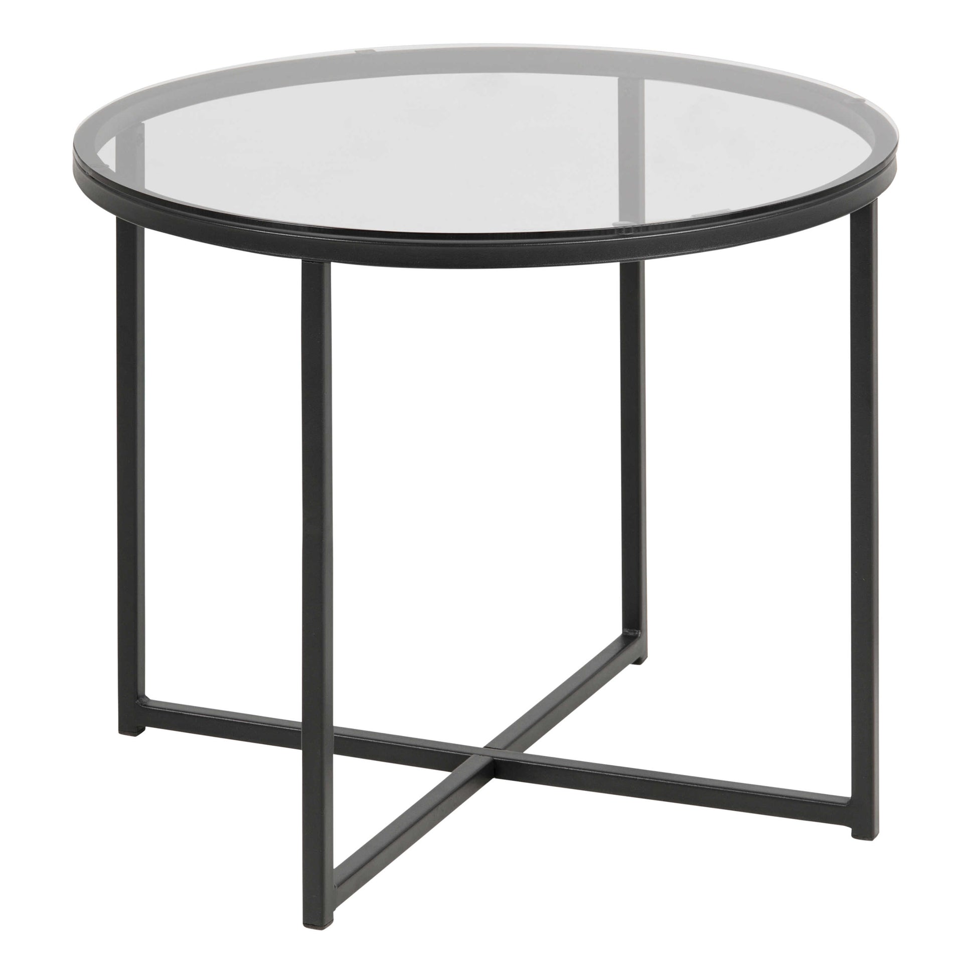 Oakfern Round Black Metal Side Table Grey Glass Top