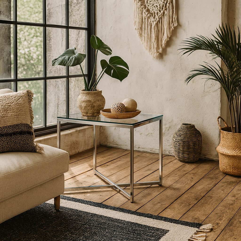 Precision and polish define this square side table, where a clear glass surface brings lightness and clarity to the room. The crisp shape feels intentional and balanced, offering a refined spot to rest books, drinks or decorative pieces without overwhelming the space. It adds a calm, contemporary accent that works effortlessly in modern lounges or bedrooms.