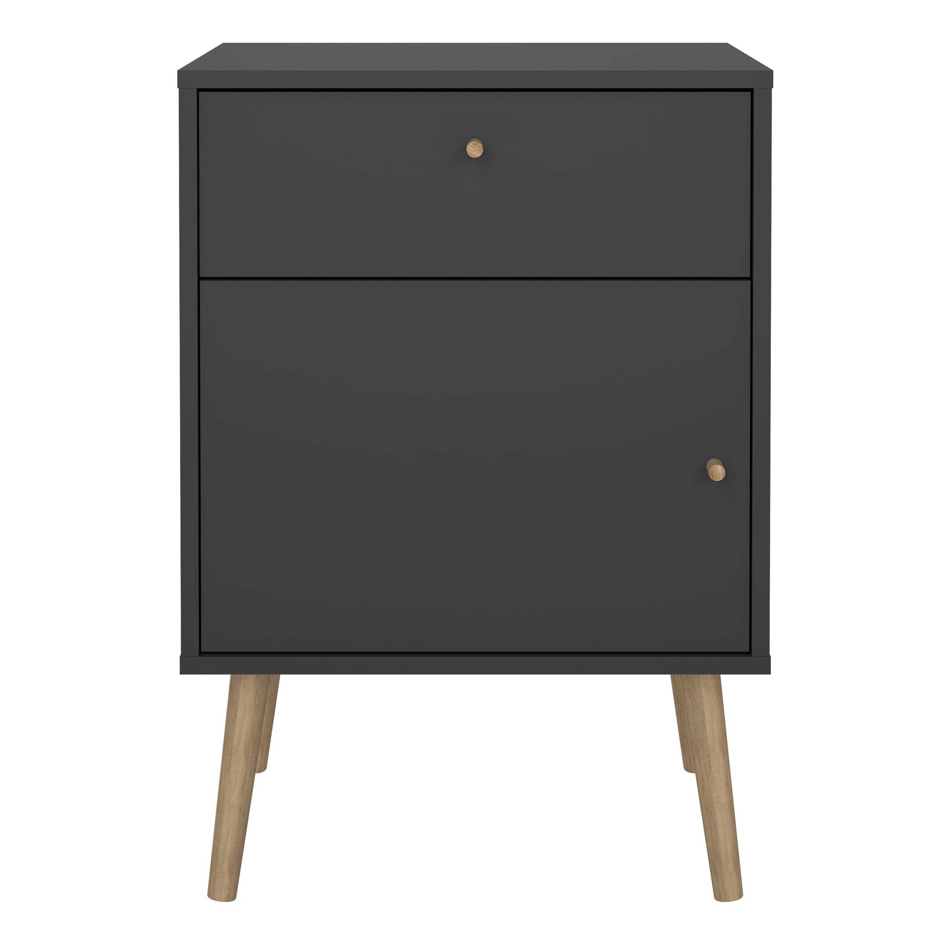 Quietbloom Dark Grey Wooden Bedside Table 1 Door 1 Drawer