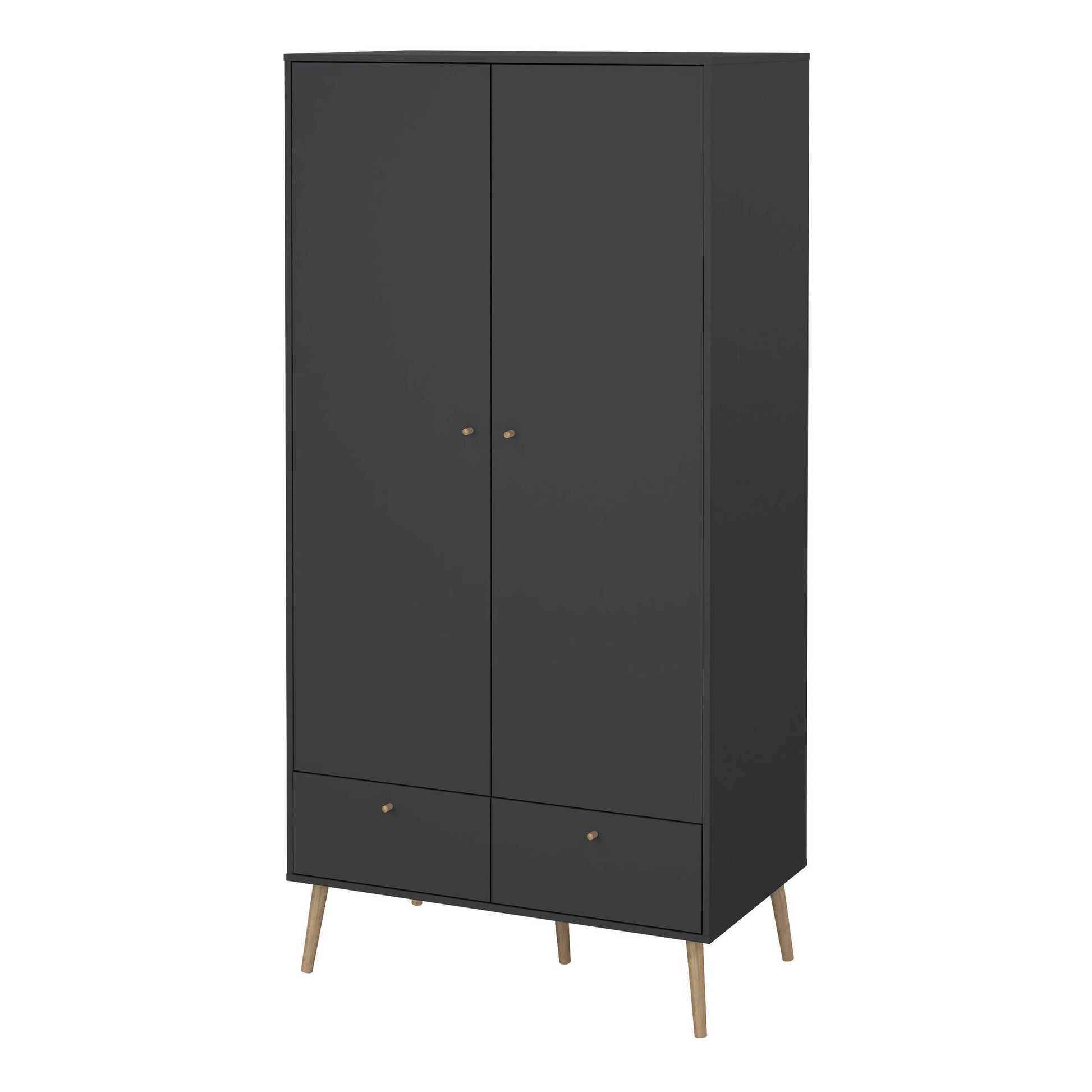 Quietbloom Dark Grey Wooden Wardrobe with 2 Doors 2 Drawers