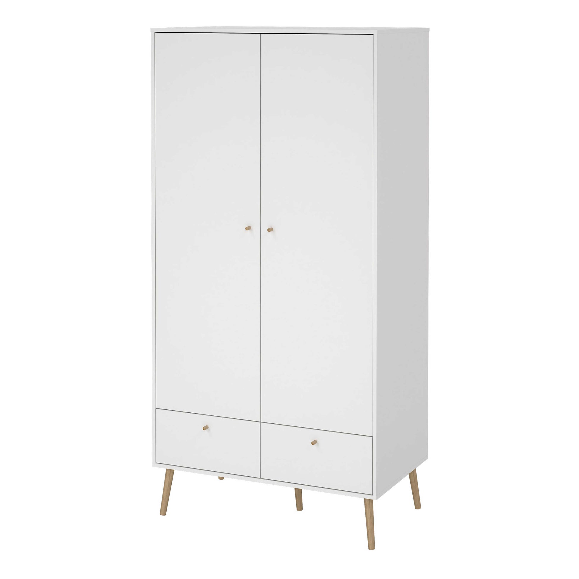 Quietbloom White Wooden Wardrobe 2 Doors 2 Drawers