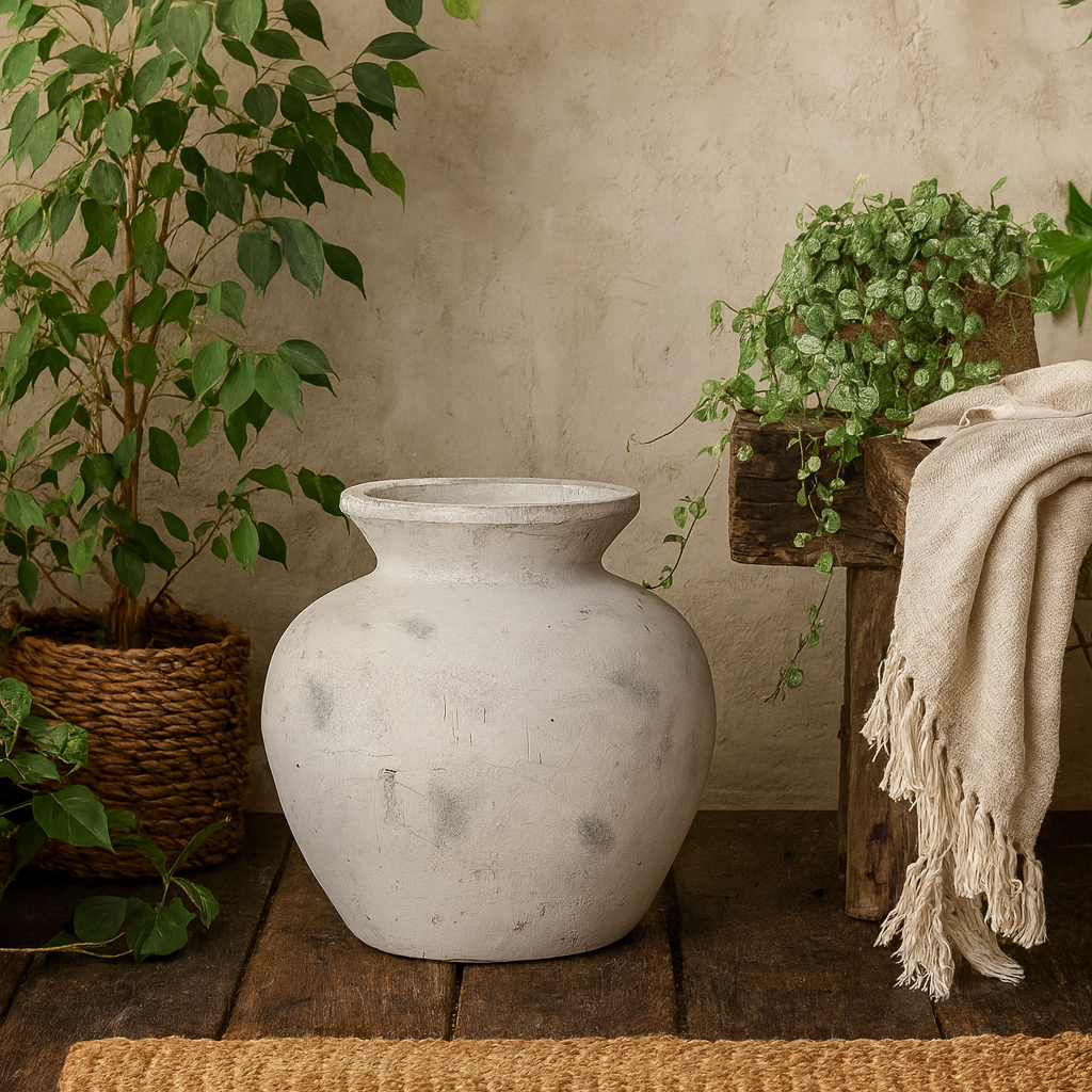 The Terra Large Antique White Vase, at 30cm is ideal to display a beautiful bouquet of flowers or greenery to complete this product perfectly. The white finish ensures this product will fit into any interior while the style has taken inspiration from a Greek style making it timeless and unique.