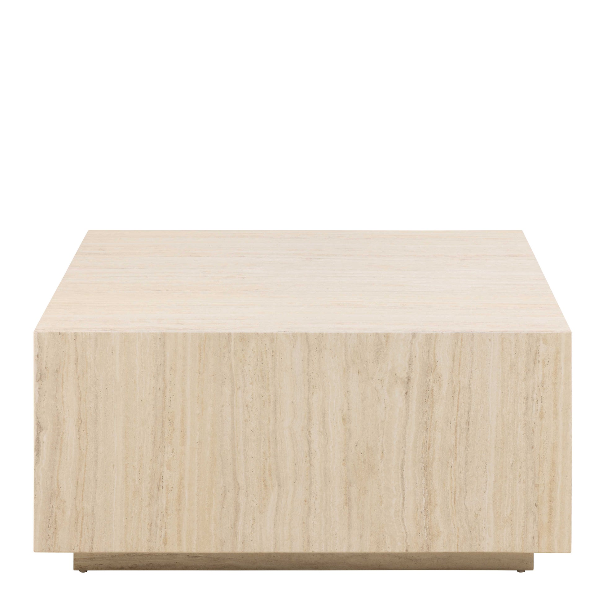 Bring quiet sophistication into the living space with a square coffee table that feels calm, sculptural, and design led. A light travertine effect surface adds natural texture and warmth, creating an inviting focal point that works beautifully in Scandinavian and minimalist interiors. The soft tonal finish keeps the look airy while still making a confident visual statement.