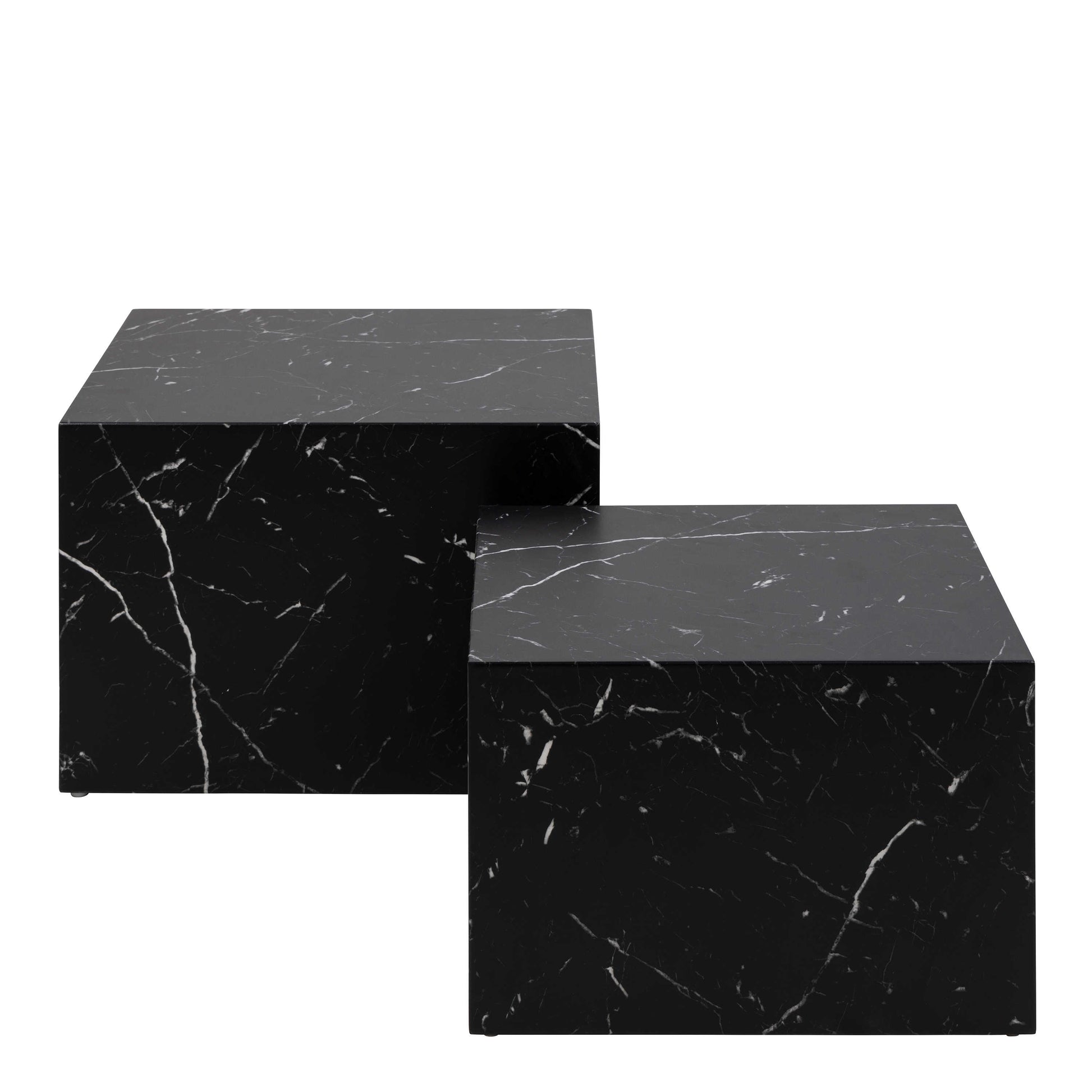 Set of 2 Lincoln Black Marquina Marble Square Coffee Table