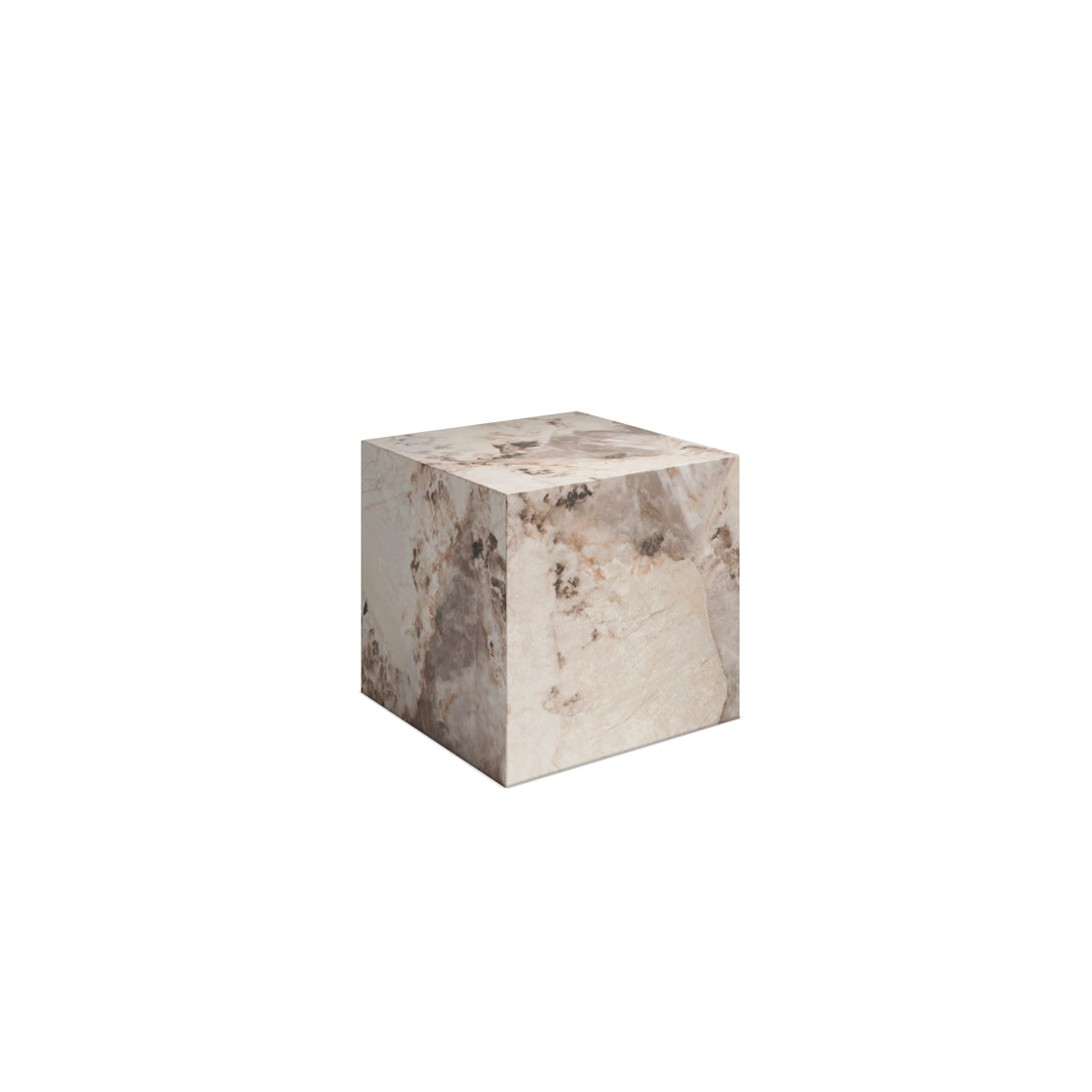 Bold veining and warm neutral tones give this side table a confident sculptural presence. The marble effect feels rich yet grounded, adding depth without overpowering surrounding pieces. Its block form creates a calm focal point that sits comfortably within modern, relaxed interiors.